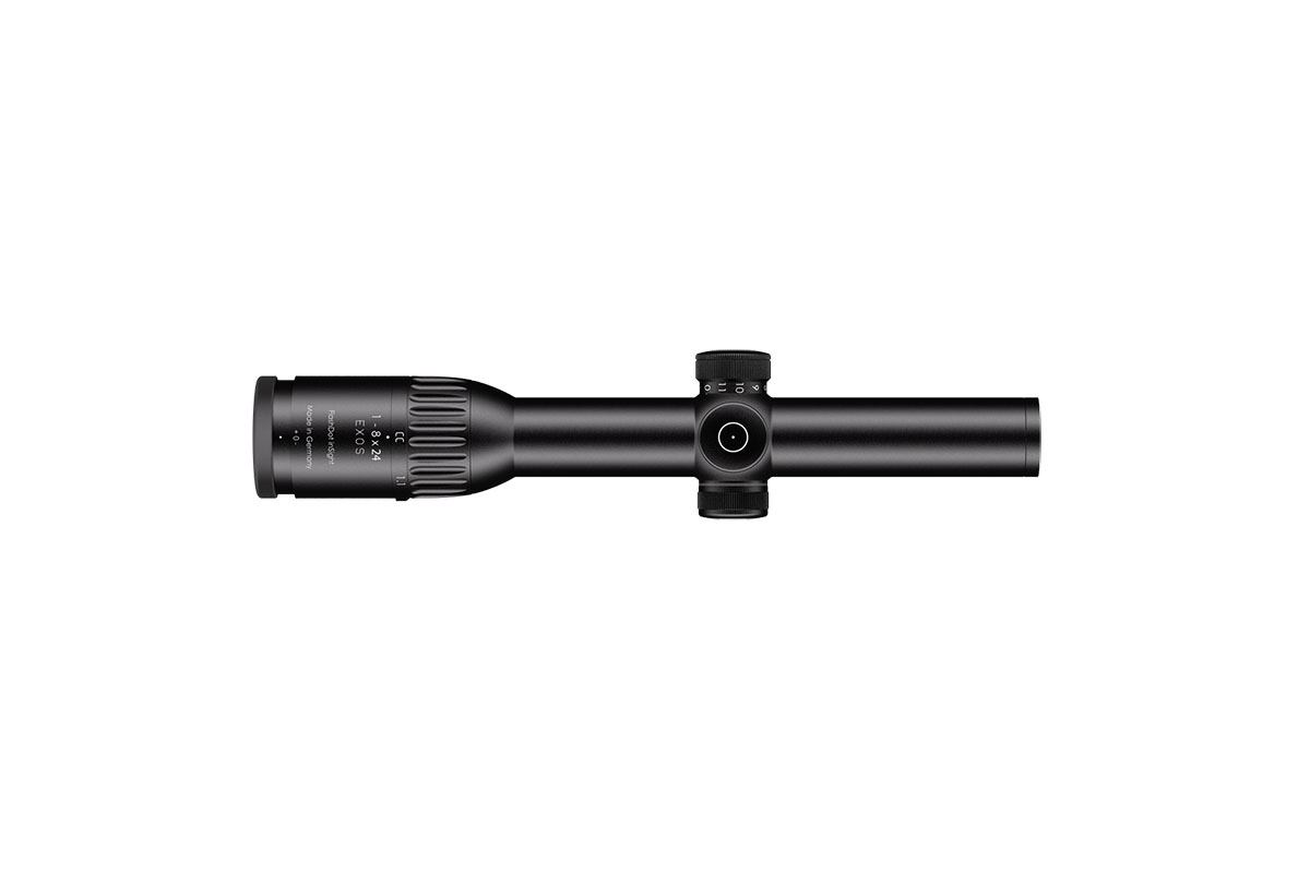 4060537047134 The 1-8x24 Exos is a mission-tailored optic engineered for uncompromising short-range performance, built with precision and designed for high-intensity scenarios. With its patented Close-Combat Mode (CC-Mode), genuine 1× magnification and parallax set at 7 m provide effortless target acquisition at the closest of ranges, and from 1.1× onward the parallax shifts to 100 m for seamless transition to mid-range engagement. A generous exit pupil ensures swift visual acquisition, while the daylight-visible FlashDot illuminated reticle (second focal plane) remains distinct even during rapid shoulder-to-cheek transitions. The scope is optimal for driven hunts and tactical operations alike, and with the optional CQB reticle it adapts readily for competitive shooting. Available in a retrofit compatible TMR version, the 1-8x24 Exos accommodates an optional Throw Lever for faster magnification adjustments on the fly. Technically, this model features: Magnification range: 1–8× Second focal plane (2. FP) reticle 30 mm main tube diameter, 24 mm objective lens, length 293 mm (11.54 in) Weight: 595 g (20.99 oz) Field of view: 35.3–4.9 m @100 m (105.9–14.7 ft @100 yd) Click value: 1 cm @100 m; Elevation internal adjustment range up to 410 cm @100 m; Windage internal up to 305 cm @100 m; External ±152 cm @100 m Constructed with premium craftsmanship in Germany and finished in black, the 1-8x24 Exos is a precision instrument ready for dynamic applications where speed, clarity and reliability are non-negotiable.