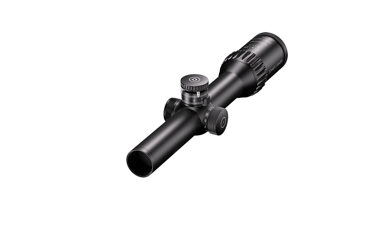 4060537066777 The 1‑8×24 Exos from Schmidt and Bender is a highly versatile, premium hunting riflescope designed for both rapid target acquisition and effective mid‑range shooting. With a magnification range of 1–8× and a 24 mm objective lens, it combines the speed of a red‑dot style sight with the precision of a full zoom optic. Key Features and Benefits True 1× magnification at the low end enables fast, intuitive shots with both eyes open and no magnification distortion. Higher magnification transitions up to 8×, offering flexibility across a wide range of distances. Wide field of view: approximately 35.3 m to 4.9 m at 100 m, providing excellent situational awareness at low magnification and fine detail at higher zoom. Generous eye relief of 90 mm for comfortable and safe mounting across different rifle platforms. High optical quality with an exit pupil of approximately 9.6–3.0 mm and light transmission over 90 %, ensuring bright, crisp imagery even in low light. Compact, durable build: 30 mm main tube, length approx. 293 mm, weight around 595 g. Adjustable illuminated reticle in certain versions for optimal visibility in varied lighting conditions. Technical Highlights Magnification: 1–8× Objective Lens Diameter: 24 mm Field of View: approx. 35.3–4.9 m @100 m Exit Pupil: approx. 9.6–3.0 mm Eye Relief: 90 mm Transmission: >90% Tube Diameter: 30 mm Length: approx. 293 mm Weight: approx. 595 g Ideal Use Case The 1‑8×24 Exos is perfect for hunters and shooters engaging fast-moving game or participating in driven hunts where immediate reaction is needed at short distance, while still providing enough zoom to clearly identify and shoot at greater ranges. Its blend of speed, clarity, and field-ready design makes it a versatile, one-scope solution.