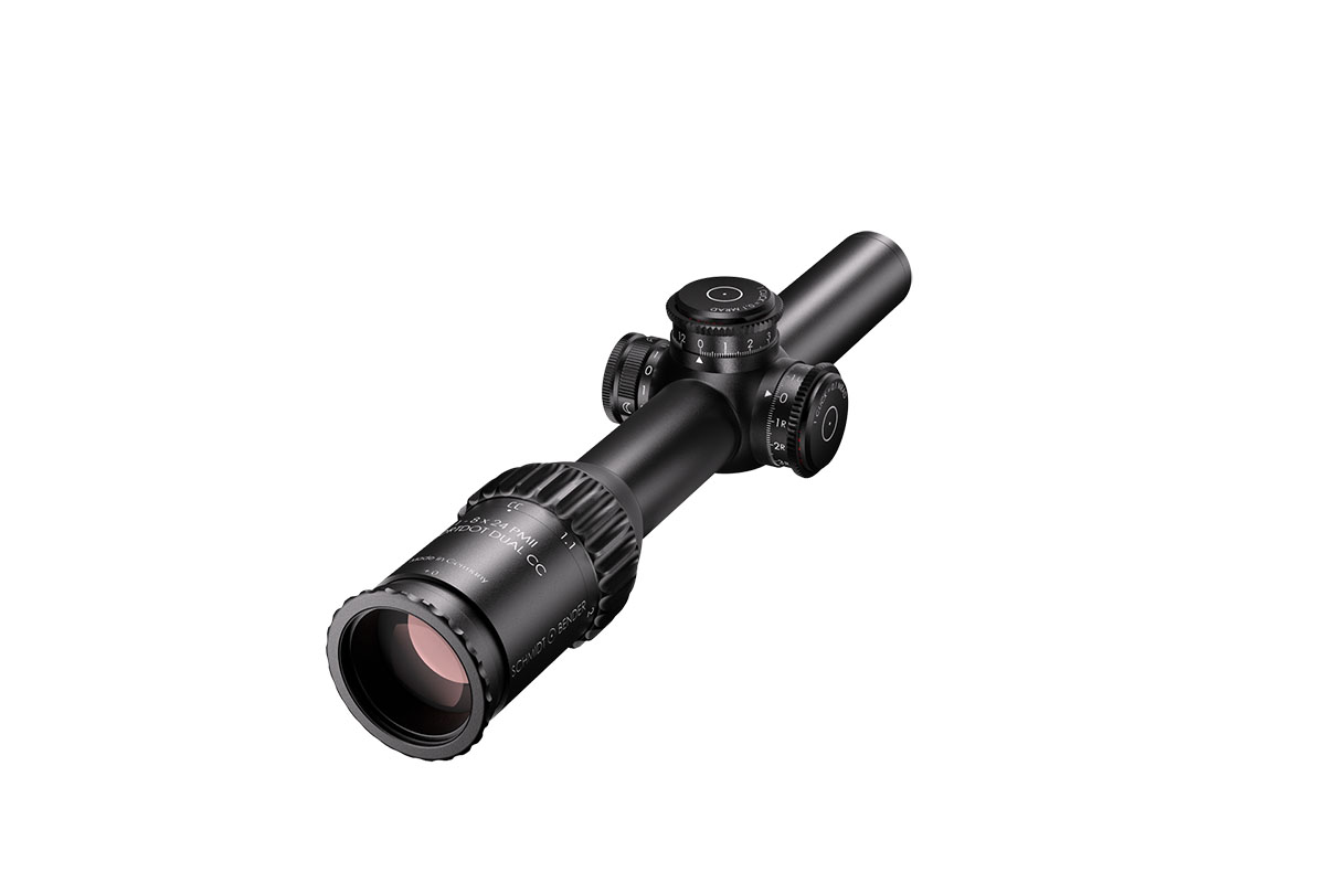 4060537045178 The 1‑8×24 PM II ShortDot Dual CC is a premium multipurpose riflescope designed to bridge ultra‑fast close‑quarters engagement and precision mid‑range shooting. With a full 1–8× magnification range, it integrates both a high‑visibility red‑dot sight for rapid acquisition and a tactical reticle for comprehensive zoom usage. Key Features and Highlights Dual focal plane system: Combines a daylight‑visible red dot in the second focal plane (SFP) with a tactical reticle in the first focal plane (FFP) for consistent hold‑points across the zoom range. Patented Close‑Combat Mode (CC‑Mode): When set at 1× magnification the parallax is fixed at approx. 7 m for true parallax‑free shooting at close range; above ~1.1× it transitions to ~100 m enabling accurate mid‑range engagement. Large exit pupil and generous eye relief: Optimized for fast, intuitive use in dynamic or static shooting scenarios—providing comfortable alignment whether standing, kneeling or prone. Compact and rugged design: With a 30 mm main tube diameter, length of approx. 293 mm and weight of approx. 635–650 g depending on configuration, this scope is built to handle extreme conditions—including low temperatures and high recoil/shock. High optical quality: Field of view spans roughly 35.3–4.9 m at 100 m across the zoom range, offering wide situational awareness at low magnification and refined detail at higher zoom. Precision mechanics: Turrets are ultra‑low profile, lockable, extremely durable and designed for exacting use in tactical or competition environments. Typical Specifications Magnification: 1–8× Focal Plane: Dual (1st and 2nd) Parallax: CC‑Mode ~7 m; Standard Mode ~100 m (optional up to ~300 m) Field of View: ~35.3–4.9 m @100 m Exit Pupil: ~9.8–3.0 mm Eye Relief: ~90 mm Tube Diameter: 30 mm Length: ~293 mm Weight: ~635–650 g