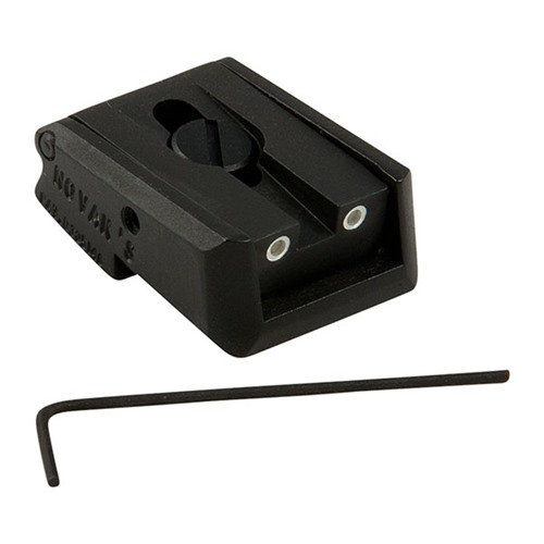CNC-machined, steel, rear sight with Novak’s famous, low-profile design and the added versatility of elevation and windage adjustments. Set screw allows drift adjustment for windage; elevation screw positively stops and audibly clicks for easy fine-tuning. Smooth, contoured edges have less chance of catching or snagging. Front sights are CNC-machined steel and mount in factory dovetail. Available in Tritium Dot for Colt and clones and SW1911 pistols.