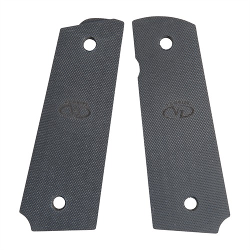 Rugged grip panels made from tough G10 fiberglass offer the durability and superior gripping texture of modern composite materials. Advanced G10 laminate won’t absorb moisture, resists impact, and won’t expand or contract due to temperature fluctuation—perfect for all-weather operations and extreme conditions. Texturing is CNC machined into the laminate, then hand-finished to ensure uniform pattern depth. The hard surface allows the texturing to be cut a little sharper to give more “bite” than traditional checkered wood grips. Aliens - Originally designed for the Precision Weapons Section of the U.S. Marine Corps, these grips feature a medium texture that’s excellent for carry, tactical operations, general range activities, or competition use. Not cut for ambidextrous safety.