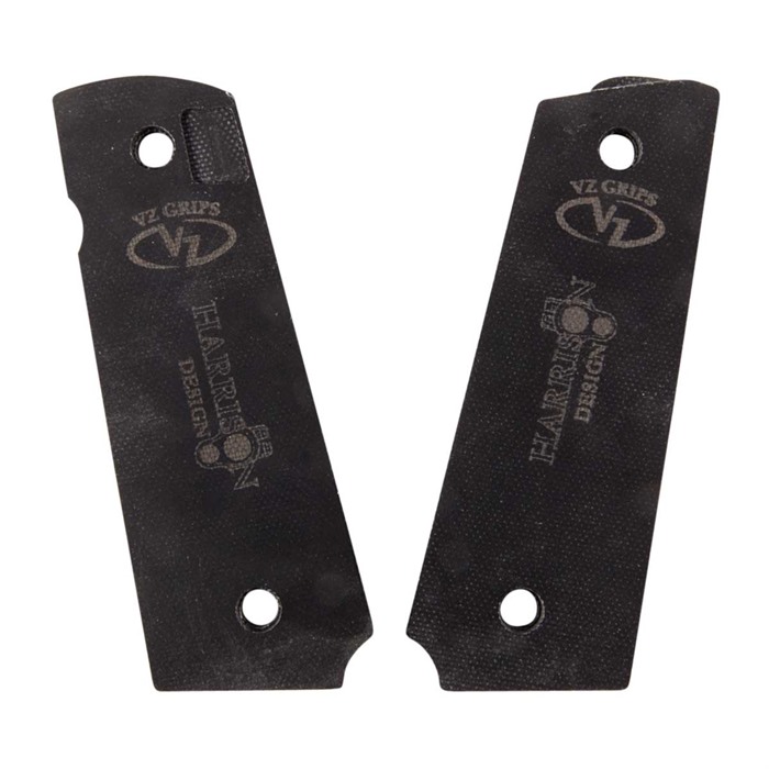 One of the great benefits of the 1911 platform is the ability to easily swap grips in order to provide an enhanced look and feel to your personal pistol. The Harrison Design 1911 G-10 Double Diamond Grips are a great option for those seeking to enhance the texture and aesthetics of their gun. The Harrison Design 1911 G-10 Double Diamond Grips are machined from durable G-10 composite material, which provides users with an incredibly tactile feel that enhances gripping capability and allows users to maintain better control of their gun. The double-diamond pattern provides a traditional appearance for your gun while providing the benefits of G-10 fiberglass-laminate material. Fully ambidextrous Color: Black Features Ambi-Vertable pocket for ambidextrous thumb-safety use The Harrison Design 1911 G-10 Double Diamond Grips are made by renowned grip manufacturer VZ grips, so they're guaranteed to provide long-lasting use for any 1911 owner.