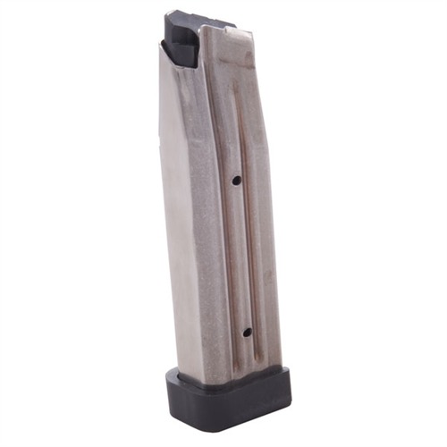 Complete, high capacity magazines. TIG welded, heat-treated, stainless steel bodies hold up to competition use without cracking or failure. All springs are tempered music wire, and fit STI bodies without trimming. Complete mags come with Polymer base pad and nylon follower for flawless feeding.