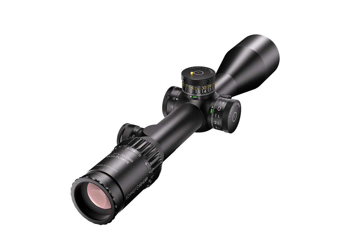 4060537043204 The 3‑27×56 PM II High Power from Schmidt and Bender is a premier tactical riflescope engineered for ultimate versatility—capable of precise performance from near‑range engagements all the way to extreme long‑distance targets. With an expansive 3–27× magnification range, this scope adapts effortlessly across calibres and mission profiles. Its 56 mm objective lens offers exceptional light gathering and clarity, enabling detailed target acquisition even at great distances. The field of view spans approximately 13.0–1.4 m at 100 m, while the exit pupil ranges around 8.7–2.1 mm. Generous eye relief of around 90 mm ensures comfortable alignment and a stable sight picture. Built on a rugged 34 mm main tube, the scope is constructed for demanding environments. The turret system accommodates ultra‑fine click values (e.g., ~0.1 mrad) and massive internal adjustment ranges for elevation and windage—making it suitable for long‑range engagement scenarios. Parallax adjustment commonly spans from around 10 m to infinity, giving flexibility across varied target distances. Key Specifications: Magnification: 3–27× Objective Lens Diameter: 56 mm Main Tube Diameter: 34 mm Field of View: approx. 13.0–1.4 m @100 m Exit Pupil: approx. 8.7–2.1 mm Eye Relief: approx. 90 mm Click Value: approx. 0.1 mrad (~0.5 cm @100 m) depending on configuration Parallax: from ~10 m to infinity Crafted with German precision, the 3‑27×56 PM II High Power is ideal for professionals, competition marksmen or hunters who demand the highest optical clarity, mechanical resilience and full versatility across a wide range of engagement distances.