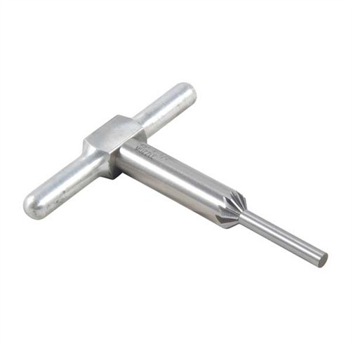 Nasze narzędzie do wygładzania krawędzi pod kątem 45° łamie krawędzie gwintu, co zapewnia czysty wylot pocisku, lub wygładza komory bębna rewolweru dla szybkich przeładowań. W zestawie znajduje się cutter, uchwyt oraz jeden pilot, wszystko zapakowane w pudełko z polipropylenu. Wymienny pilot utrzymuje cutter w odpowiedniej pozycji. Możesz zakupić dodatkowe piloty, aby używać jednego cutter'a do wielu różnych kalibrów. Piloty do innych kalibrów są dostępne osobno. Cutter 45° dostarczany w zestawach oznaczonych * ma średnicę 5/8" i jest przeznaczony do prawidłowego wygładzania większych wylotów luf i komór bębna w tych kalibrach. Wszystkie inne zestawy mają średnicę ½".