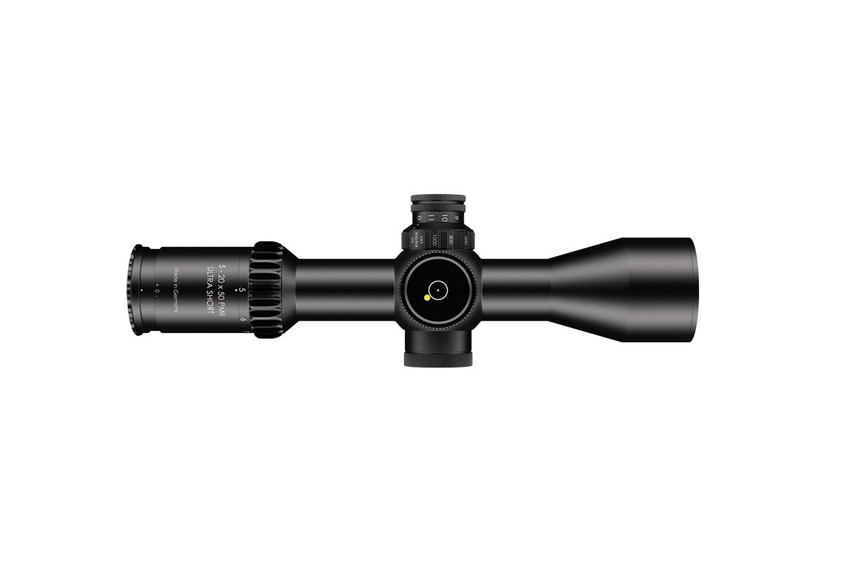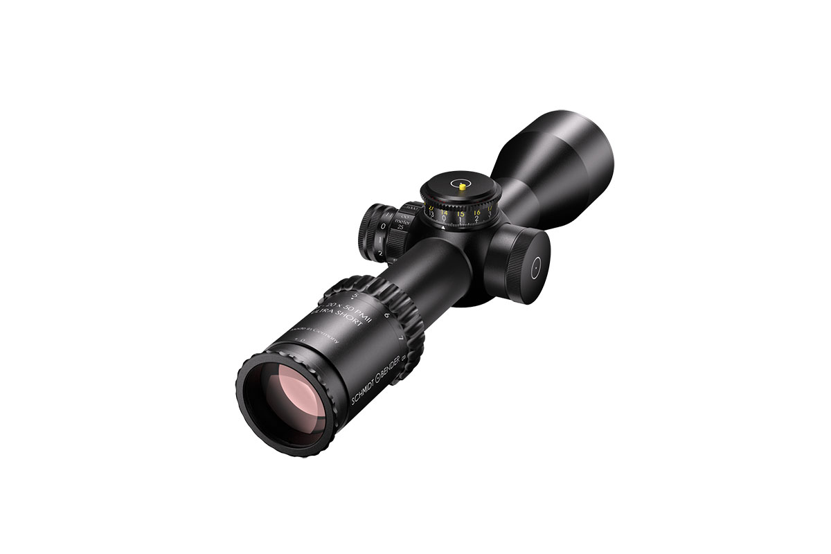 4060537063783 The 3‑20×50 PM II Ultra Short from Schmidt and Bender is a compact yet powerful riflescope engineered for high-performance engagements across medium to long distances. With its 3–20× magnification range and a 50 mm objective lens, it offers outstanding optical clarity and flexibility in a streamlined form factor. Constructed around a robust 34 mm main tube, it maintains a length of approximately 340 mm and weighs around 900 g, striking an excellent balance between size and performance—ideal for mounting on compact platforms without compromising optics. Its field of view spans roughly 13.0–2.1 m at 100 m, providing broad situational awareness at lower magnification and refined detail at the high end. The exit pupil ranges around 11.4–2.5 mm, and the eye relief is approximately 90 mm, supporting comfortable shooting in varied positions while maintaining strong light-gathering even as light fades. Advanced features include first focal plane (FFP) illuminated reticle options, side parallax adjustment (from approx. 25 m to infinity), and a low-profile elevation turret optimized for tactical precision. Key Specifications: Magnification: 3–20× Objective Lens Diameter: 50 mm Main Tube Diameter: 34 mm Field of View: approx. 13.0–2.1 m @100 m Exit Pupil: approx. 11.4–2.5 mm Eye Relief: approx. 90 mm Length: approx. 340 mm Weight: approx. 900 g With precision optics, compact build, and rugged mechanical design, the 3‑20×50 PM II Ultra Short is built for serious shooters who demand premium performance in a versatile package.