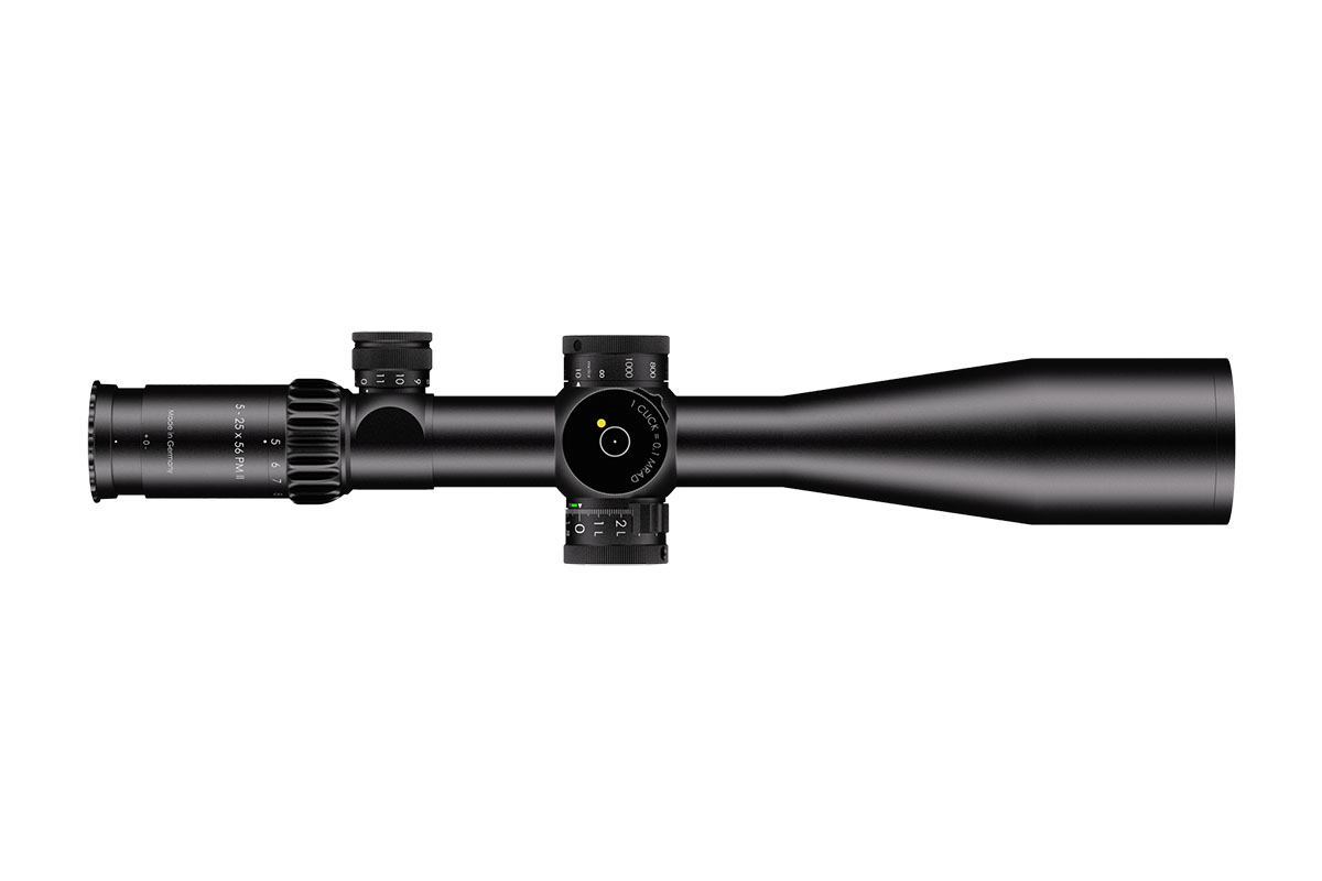 4060537033571 The 5‑25×56 PM II from Schmidt and Bender stands at the pinnacle of variable‑magnification tactical optics, engineered for long‑range precision, outstanding clarity and professional‑level reliability. With a wide 5–25× zoom range and a substantial 56 mm objective lens, it delivers exceptional light‑gathering capability, enabling crisp, bright imagery even at extended distances. Built upon a rugged 34 mm main tube, the scope accommodates large internal adjustment ranges and is designed for demanding use. It features a reticle in the first focal plane (FFP) so that scale and hold‑offs remain accurate at any magnification. The field of view spans approximately 5.3–1.5 m at 100 m, while the exit pupil ranges around 11.0–2.3 mm, and the eye relief remains generous at around 90 mm. The parallax adjustment typically extends from 10 m to infinity, enabling accurate focus from very close ranges through to extreme distances. The turret system is engineered for precision: click values as fine as 0.1 mrad (≈1 cm at 100 m) are available, and a double‑turn elevation turret combined with single‑turn windage allows vast usable correction ranges for wind and elevation. Optical transmission exceeds 90 %, and the construction is nitrogen‑filled, fog‑ and waterproof, ensuring full reliability in all climatic conditions. Key Specifications: Magnification: 5–25× Objective Lens Diameter: 56 mm Main Tube Diameter: 34 mm Field of View: approx. 5.3–1.5 m @100 m Exit Pupil: approx. 11.0–2.3 mm Eye Relief: approx. 90 mm Parallax Adjustment: from ~10 m to infinity Click Value: approx. 0.1 mrad (≈1 cm at 100 m) Optical Transmission: > 90 % Crafted in Germany to the highest standards, the 5‑25×56 PM II is the go‑to choice for military, law‑enforcement and competition shooters who demand absolute clarity, mechanical integrity and extreme flexibility in one optic.