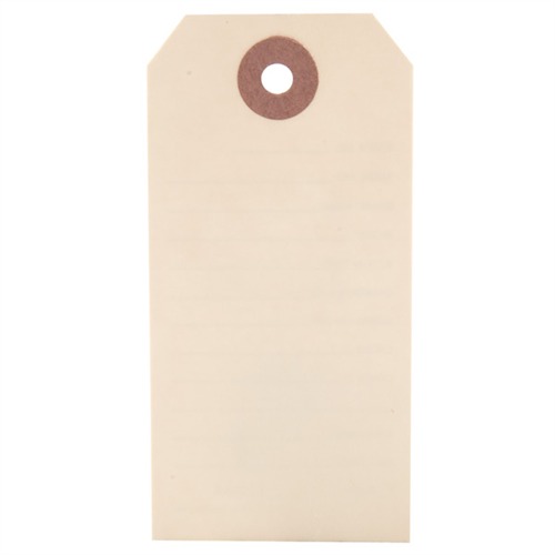 Wymiary: 3-3/4" (9.5cm) x 1-7/8" (4.8cm). Wzmocniony otwór 1/4" (6.3mm) do przewiązania tagu. Wykonane z ciężkiego papieru. Dostępne w kolorze manila, jasnoniebieskim i żółtym.