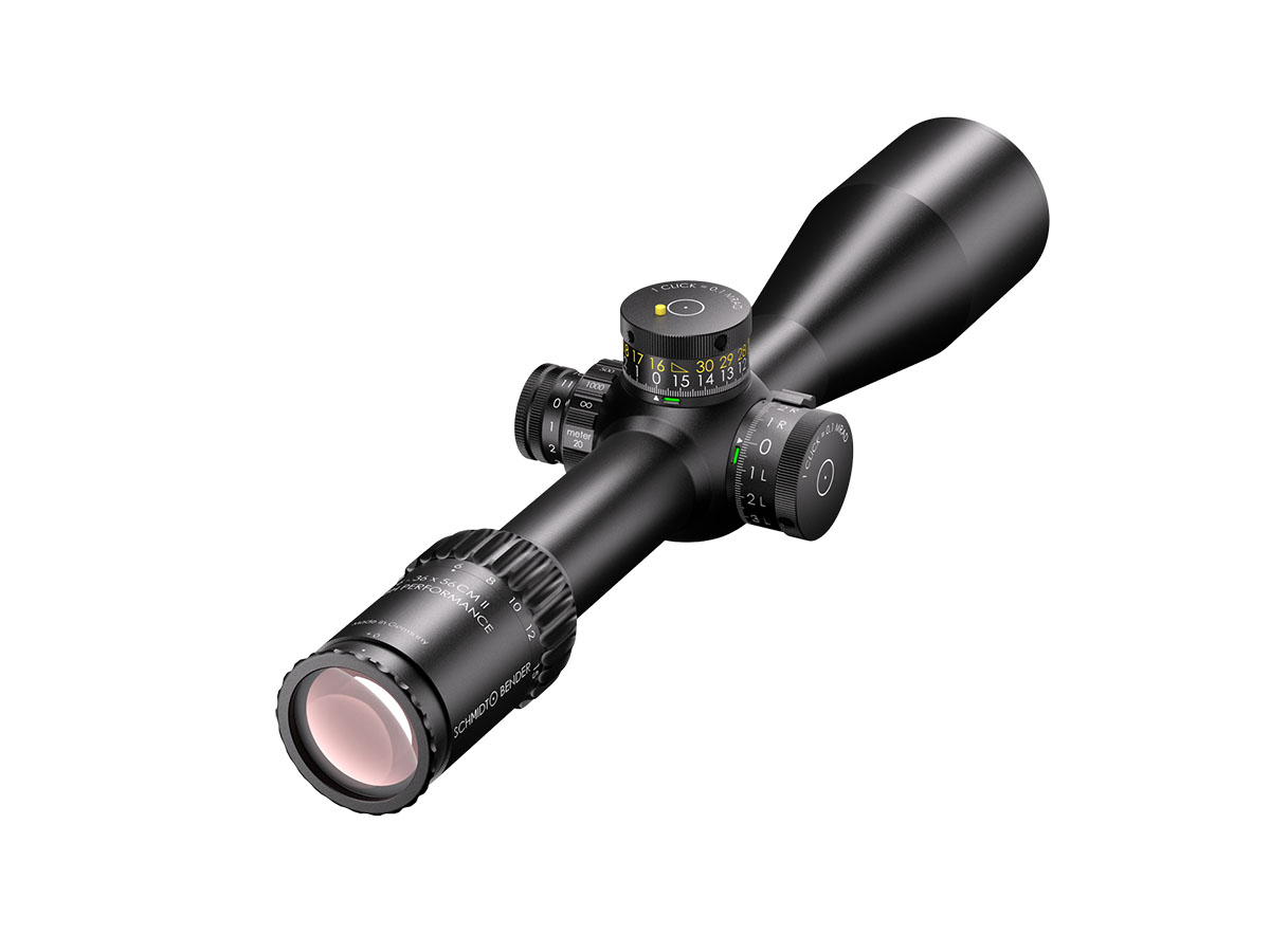 4060537070422 The 6‑36×56 CM II High Performance from Schmidt and Bender is a high-end precision riflescope engineered for medium to extreme long-range engagement. With a magnification range of 6–36× and a large 56 mm objective lens, it delivers outstanding clarity, resolution, and flexibility across demanding shooting scenarios. Its optical design provides an exceptionally large field of view for a scope in this class — even at the lowest magnification (6×), it outperforms many 5–25× scopes in terms of visual coverage. Advanced coatings ensure light transmission well over 90 %, enabling superb image brightness and contrast in challenging lighting conditions. Built on a 34 mm main tube, the scope is compact yet robust, with a length of approximately 390 mm and weight around 940 to 995 g, depending on configuration. Eye relief is generous at 90 mm, ensuring comfortable and safe use across rifle platforms. The turret system offers very large internal adjustment ranges (over 40 mrad, approx. 395 cm elevation at 100 m) and fine click values (e.g., 0.5 cm/100 m), making it well suited for precision ballistic correction at long distances. Side parallax adjustment and the integrated LPI system (illumination integrated into the parallax knob) enhance ease of use and compatibility for left-hand shooters. Key Specifications: Magnification: 6–36× Objective Lens Diameter: 56 mm Main Tube Diameter: 34 mm Field of View (approx.): 7.3–1.3 m @100 m Exit Pupil: approx. 8.3–1.6 mm Eye Relief: 90 mm Click Value: approx. 0.5 cm @100 m (configuration-dependent) Internal Elevation Adjustment: approx. 395 cm @100 m Weight: approx. 940–995 g Transmission: >90 % Tube Diameter: 34 mm Length: approx. 390 mm Reticle and Turret Configurations: Various high-end match/tactical setups available This scope is designed for marksmen, competition shooters, and professionals who demand the highest optical clarity, mechanical robustness, and long-range capability from one flagship optic.