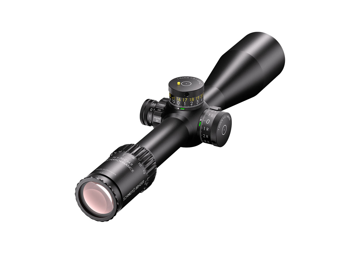 4060537070460 The 6‑36×56 CM II High Performance from Schmidt and Bender is a high-end precision riflescope engineered for medium to extreme long-range engagement. With a magnification range of 6–36× and a large 56 mm objective lens, it delivers outstanding clarity, resolution, and flexibility across demanding shooting scenarios. Its optical design provides an exceptionally large field of view for a scope in this class — even at the lowest magnification (6×), it outperforms many 5–25× scopes in terms of visual coverage. Advanced coatings ensure light transmission well over 90 %, enabling superb image brightness and contrast in challenging lighting conditions. Built on a 34 mm main tube, the scope is compact yet robust, with a length of approximately 390 mm and weight around 940 to 995 g, depending on configuration. Eye relief is generous at 90 mm, ensuring comfortable and safe use across rifle platforms. The turret system offers very large internal adjustment ranges (over 40 mrad, approx. 395 cm elevation at 100 m) and fine click values (e.g., 0.5 cm/100 m), making it well suited for precision ballistic correction at long distances. Side parallax adjustment and the integrated LPI system (illumination integrated into the parallax knob) enhance ease of use and compatibility for left-hand shooters. Key Specifications: Magnification: 6–36× Objective Lens Diameter: 56 mm Main Tube Diameter: 34 mm Field of View (approx.): 7.3–1.3 m @100 m Exit Pupil: approx. 8.3–1.6 mm Eye Relief: 90 mm Click Value: approx. 0.5 cm @100 m (configuration-dependent) Internal Elevation Adjustment: approx. 395 cm @100 m Weight: approx. 940–995 g Transmission: >90 % Tube Diameter: 34 mm Length: approx. 390 mm Reticle and Turret Configurations: Various high-end match/tactical setups available This scope is designed for marksmen, competition shooters, and professionals who demand the highest optical clarity, mechanical robustness, and long-range capability from one flagship optic.