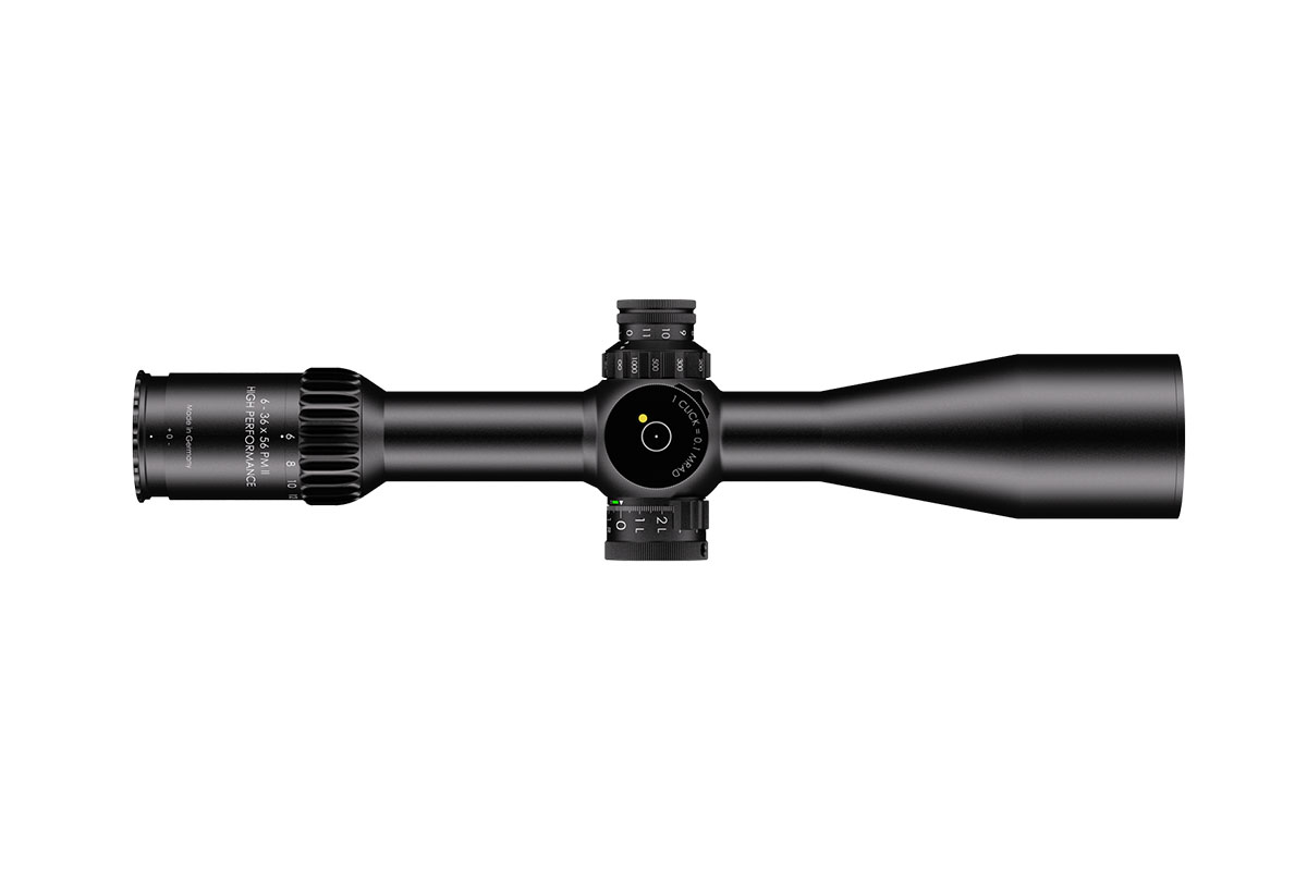 4060537066746 The 6‑36×56 PM II High Performance from Schmidt and Bender is a benchmark optic engineered for serious medium‑ to extreme‑long‑range shooting. With its expansive 6–36× magnification range and a generous 56 mm objective lens, it delivers exceptional clarity, reach and flexibility for demanding applications. Crafted on a robust 34 mm main tube, the scope is compact in length (approx. 390 mm) and relatively light for its class (around 940 g), yet built with the ruggedness and precision befitting the PM II series. The first‑focal‑plane (FFP) reticle ensures accurate hold‑overs, ranging and subtensions at every magnification level. With a transmission rating of well over 90 %, the optical system offers bright, high‑resolution imagery critical for target recognition at extended distances. Its field of view spans about 7.3–1.3 m @100 m, and the exit pupil ranges from approximately 8.3–1.6 mm, providing both wide situational awareness at lower magnification and finely‑detailed views at higher zoom levels. The eye relief is approximately 90 mm, ensuring comfortable viewing across shooting positions. The turret system features ultra‑fine 0.1 mrad click values, and the internal adjustment ranges exceed 40 mrad, giving the shooter a massive envelope for elevation and windage correction. The scope’s innovative “LPI” (Illuminated‑Parallax‑Integrated) system enhances usability, including left‑hand shooter compatibility and more mounting flexibility. Key Specifications: Magnification: 6–36× Objective Lens Diameter: 56 mm Main Tube Diameter: 34 mm Field of View: approx. 7.3–1.3 m @100 m Exit Pupil: approx. 8.3–1.6 mm Eye Relief: approx. 90 mm Transmission: >90% Click Value: ~0.1 mrad Length: approx. 390 mm Weight: approx. 940 g Designed and manufactured in Germany with highest precision, the 6‑36×56 PM II High Performance is ideal for professionals, competition marksmen or hunters seeking top‑tier optical clarity, mechanical integrity and flexibility across distances that demand elite performance.