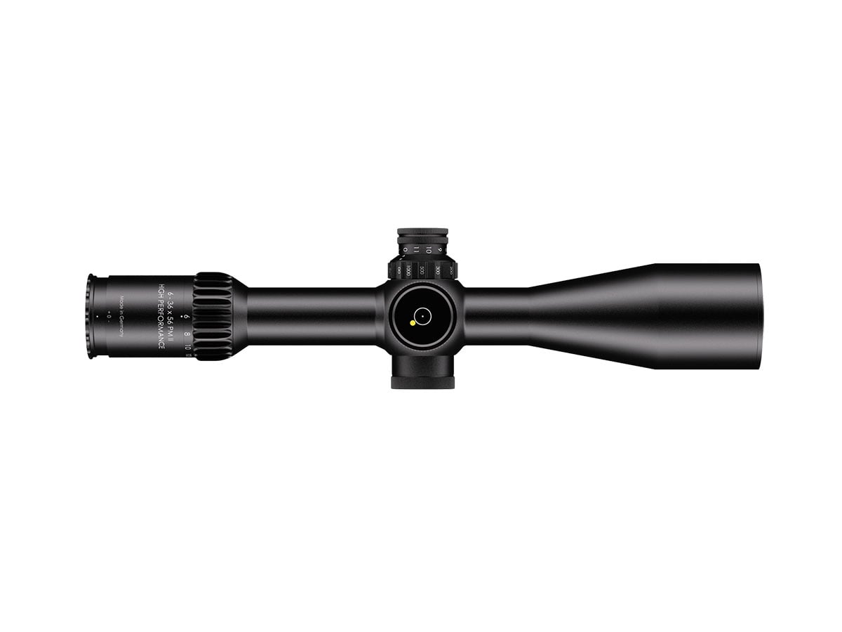 4060537069693 The 6‑36×56 PM II High Performance from Schmidt and Bender is a benchmark optic engineered for serious medium‑ to extreme‑long‑range shooting. With its expansive 6–36× magnification range and a generous 56 mm objective lens, it delivers exceptional clarity, reach and flexibility for demanding applications. Crafted on a robust 34 mm main tube, the scope is compact in length (approx. 390 mm) and relatively light for its class (around 940 g), yet built with the ruggedness and precision befitting the PM II series. The first‑focal‑plane (FFP) reticle ensures accurate hold‑overs, ranging and subtensions at every magnification level. With a transmission rating of well over 90 %, the optical system offers bright, high‑resolution imagery critical for target recognition at extended distances. Its field of view spans about 7.3–1.3 m @100 m, and the exit pupil ranges from approximately 8.3–1.6 mm, providing both wide situational awareness at lower magnification and finely‑detailed views at higher zoom levels. The eye relief is approximately 90 mm, ensuring comfortable viewing across shooting positions. The turret system features ultra‑fine 0.1 mrad click values, and the internal adjustment ranges exceed 40 mrad, giving the shooter a massive envelope for elevation and windage correction. The scope’s innovative “LPI” (Illuminated‑Parallax‑Integrated) system enhances usability, including left‑hand shooter compatibility and more mounting flexibility. Key Specifications: Magnification: 6–36× Objective Lens Diameter: 56 mm Main Tube Diameter: 34 mm Field of View: approx. 7.3–1.3 m @100 m Exit Pupil: approx. 8.3–1.6 mm Eye Relief: approx. 90 mm Transmission: >90% Click Value: ~0.1 mrad Length: approx. 390 mm Weight: approx. 940 g Designed and manufactured in Germany with highest precision, the 6‑36×56 PM II High Performance is ideal for professionals, competition marksmen or hunters seeking top‑tier optical clarity, mechanical integrity and flexibility across distances that demand elite performance.