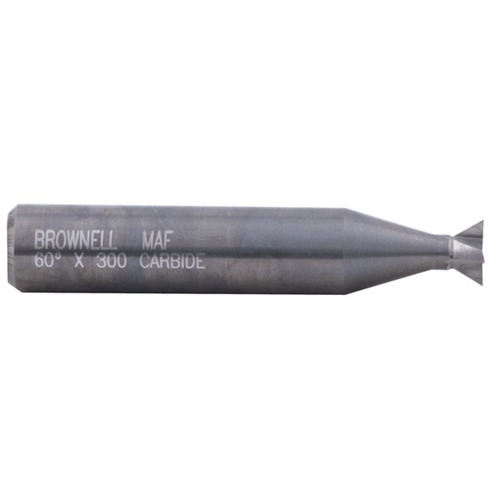 050806019843 Wycinak do rowków w kształcie klina, który jest wymagany do zainstalowania specjalnych celowników przednich do pistoletów od Jim Clark, Ed Brown, Bob Marvel i innych. Lekko niedopasowany, aby umożliwić precyzyjne dopasowanie końcowe i zrekompensować ewentualne zużycie maszyny. UWAGA: Do użytku wyłącznie w frezarce. Węglik stały opiera się na zużyciu i łatwo przecina nawet utwardzone stale. Wycięcie o średnicy .300" (7.3mm), trzpień o średnicy 3⁄8" (9.5mm). Kąt 60° lub 65°.Czas dostawy ok. 14-21 dni.