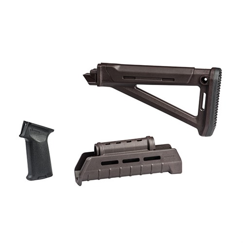Update your Kalashnikov with these Magpul kits that feature the AK-47/74 MOE stock and handguard along with the Magpul MOE AK grip. Providing Magpul construction and ingenuity to the venerable AK platform, the Magpul MOE AK Stock is an optimized fixed stock for most stamped-receiver rifles. Featuring the unique wedge block fitment of the Zhukov-S Stock, the MOE AK Stock provides internal storage, optimized QD sling swivel placement, a shock absorbing rubber butt-pad for positive placement, and user-selectable snap on Cheek Risers. (Sold Separately) The Magpul MOE AK Hand Guard is a replacement for standard AK pattern rifles WITHOUT a front sling loop on the hand guard retainer. Featuring an extended gripping portion, integrated heat shield, M-LOK mounting capability, and replacement gas tube cover, the MOE AK Hand Guard is an upgrade to any AK pattern rifle. A drop-in upgrade for AK-pattern pistol grips, the MOE AK Grip is compatible with reinforced and un-reinforced receivers. It is designed to improve ergonomics, with an aggressive texture for positive weapon control and one-piece reinforced polymer construction. It is compatible with Magpul Grip Cores for storage customization. *Please note that the Plum kit includes a black version of the MOE AK grip.
