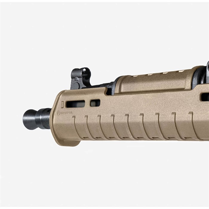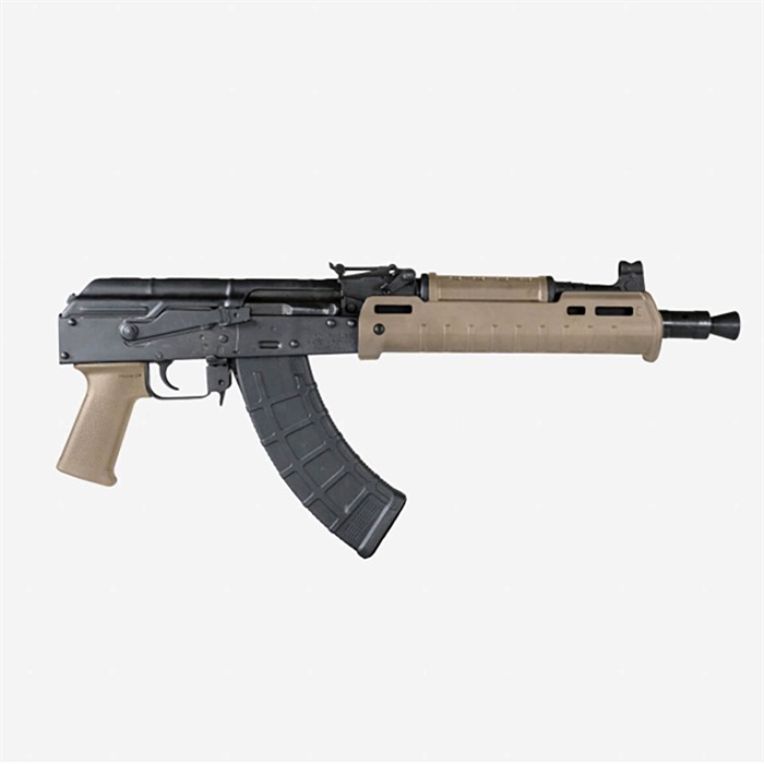 The Zhukov-U Hand Guard is a shortened version of Magpul's original Zhukov hand guard for use on short-barreled AK rifles and pistols. Like the original, the Zhukhov-U Hand Guard replaces the small, skinny wood factory guard to give you a large, comfortable gripping surface thats compatible with modern shooting techniques. An internal aluminum chassis clamps directly to the barrel for a solid flex-free installation and excellent barrel heat dispersion, while the comfortable injection molded exterior gives superior ergonomics. The Zhukov-U Hand Guard is compatible with the Ultimak gas tube rail for optics. It also allows you to retain use of the military-issue cleaning rod (unlike the original Zhukov). 1.5" shorter than the standard Zhukov hand guard Fits stamped and milled AK-47 / AK-74 rifles with standard-length gas systems Optimized for short-barreled rifles such as AK-102, AK-104 & AK-105 M-LOK slots for accessory attachment at the 3, 6, and 9 oclock positions Vented gas tube cover Counts as one US compliance part under 18 U.S.C. section 922(r) Installation requires permanent removal of the factory handguard retaining cap and forward sling mount The Zhukov-U Hand Guard can be mounted on rifles with full-length barrels, if you prefer a smaller hand guard. Due to the wide range of tolerances typical of AK-pattern rifles, minor additional fitting may be required.