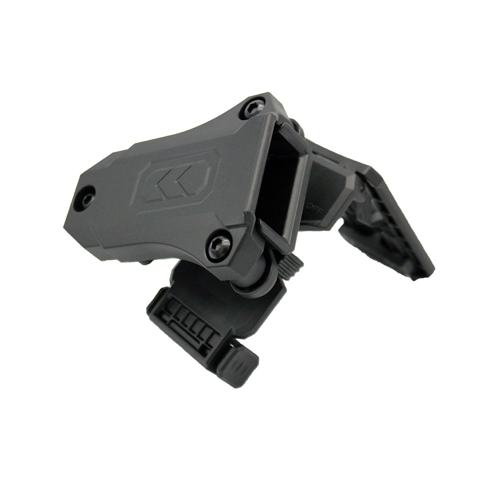 Uchwyt mocowany jest do pasa IPSC bez użycia narzędzi. Pętla pasa otwiera się po naciśnięciu obu przycisków zwalniających. Po włożeniu pasa, tylna płyta może być po prostu zablokowana na miejscu.