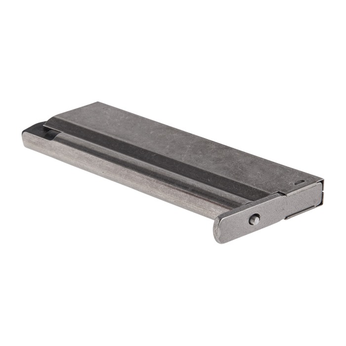 Don’t waste time trying to coax that old, worn out magazine to feed properly when you could enjoy shooting your AMT AutoMag II in .22 WMR with a brand-new replacement mag from International Armament. These new replacement magazines are carefully manufactured to the correct specifications for the best fit and function in your classic AutoMag II rimfire pistol. • New production - not old stock • All-stainless steel construction with modern polymer follower • 9-rd model fits pistols with 4" & 6" barrels ONLY • 7-rd model fits pistols with 3-3/4" barrel ONLY These AMT Automag II .22 WMR replacement magazines are built with a mag body, base plate, and retainer of polished stainless steel - just like the originals - with a follower of slick, durable, self-lubricating black polymer. They'll deliver reliable fit and trouble-free feeding in your AutoMag without the downtime spent clearing jams.