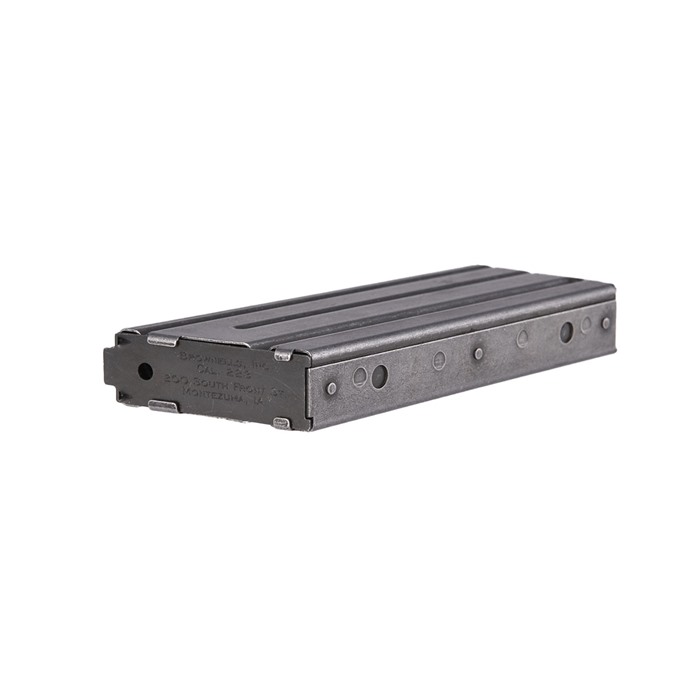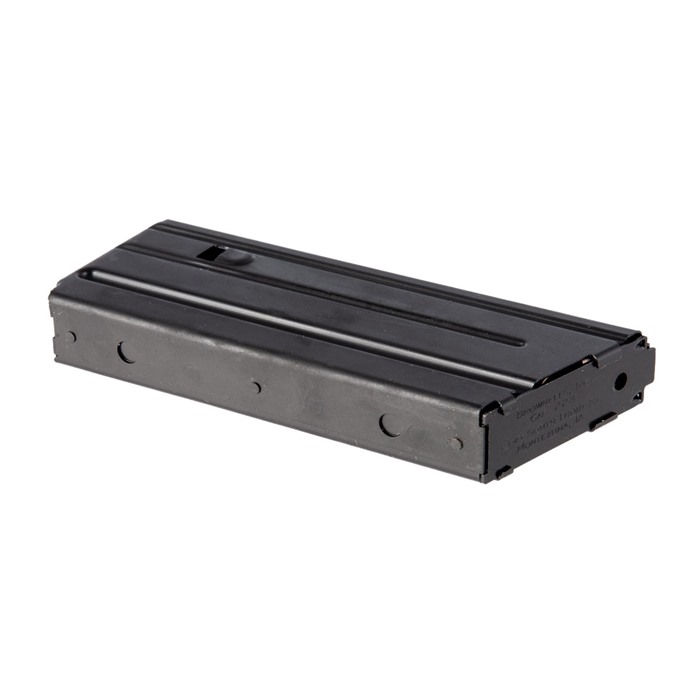 PLEASE NOTE: Final batch available has a parkerized, mottled finish. The magazine is not corroded, and was done to give the appearance of an older part. Whether you’re at the range or humpin’ the boonies, having plenty of ammo to feed your AR-15 "Retro" rifle is vital. With a few extra loaded Brownells 25-round Retro AR-15 magazines on hand, you won’t have to "di-di mau" back for more. Externally, this straight-bodied steel mag is a carefully reproduced replica of the magazines Armalite assembled for their original AR-15 prototype rifles - ideal for your very early Retro Repro build. More good news: our 25-round Retro AR-15 mags are 100% up-to-date with reliable modern innards, and they will fit and function dependably in ANY modern AR-15 with a mil-spec lower, including our Retro lowers. We’re pointing this out because, if you know your AR-15 / M16 history well, you know that the prototype rifles’ mag won’t fit a modern gun. Now you can give your rifle that period-correct appearance so many AR-15 history fans/shooters crave, with a reasonably priced "shooter" mag! Fits modern "mil-spec" AR-15 lower receiver, including Brownells Retro receivers Stamped steel body & floorplate with correct markings/indentations Durable matte black Parkerized finish Chrome silicon spring maintains proper tension for consistent feeding Glass-fiber reinforced composite follower further aids feeding Our 25-round Retro AR-15 magazines are the perfect complement to your Retro AR-15 rifle - whether you bought it whole or built it from parts. It’s also ideal for shooters who prefer the reliability of the straight-body magazines the AR-15 was originally designed to use but want 5 more rounds than you get from the standard 20-round mags. As a bonus, that sturdy steel body will stand up to all the abuse you can give it, and be ready for more!