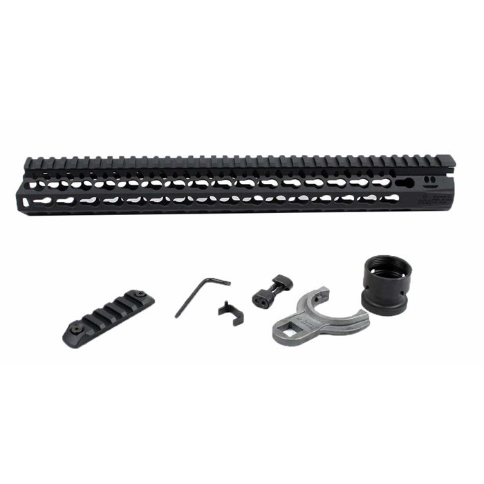 Bravo Company’s machined aluminum BCM KMR Alpha Handguard free-floats the barrel for better accuracy potential while it provides plenty of KeyMod™ slots for add-on rail segments and accessories. Built-in Picatinny top rail is supplemented by KeyMod™ slots at - and between - the 3, 6 and 9 o'clock positions. Fits standard AR-15 upper receiver Lightweight yet robust aluminum construction, reinforced with non-reflective hardcoat anodized finish 1.5" O.D., measured flat-to-flat, 1.3" I.D. Proprietary barrel nut and mounting hardware INCLUDED Comes with one KeyMod rail segment - more rail segments sold separately The Bravo Company BCM KMR Alpha Handguard flares slightly at the front into a special, flat-bottomed shape that's comfortable to hold, and provides stable support when shooting off barricade or obstacle. Brownells Gun Tech™ Note: The KeyMod™ accessory-mounting system was developed by Eric Kincel, who is now the director of Bravo Company’s product development team. It is designed to work in parallel with the existing MIL-STD 1913 Picatinny rail systems, often providing greater versatility, modularity, and ease of configuring accessories than Picatinny rails alone.
