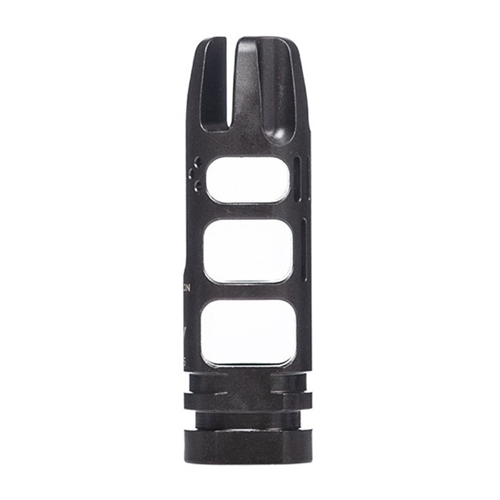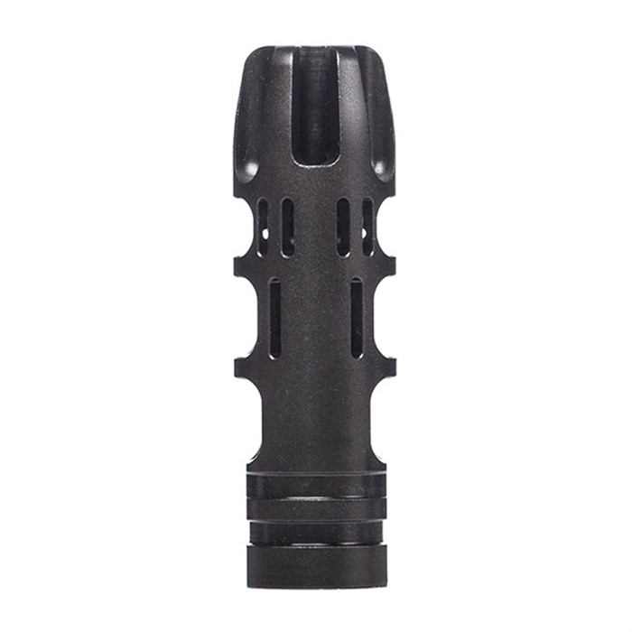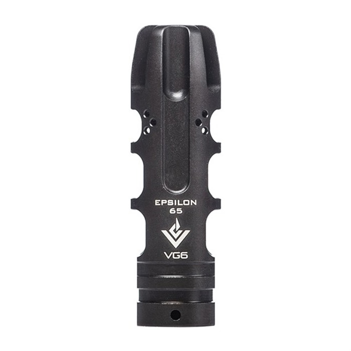 The VG6 Epsilon 65 from Aero Precision extends the benefits of the popular Epsilon muzzle device to rifles chambered in 6.5 Creedmoor, 6.5 Grendel, 6.8 Remington SPC, and similar calibers. Combining the benefits of a muzzle brake, compensator AND flash suppressor in one package, the innovative Epsilon 65 counteracts muzzle rise to help you stay on target during rapid fire, while lessening felt recoil to reduce the punishment your shoulder takes during long shooting sessions. VG6 Epsilon 65 has a carefully engineered internal chamber that manages gas flow to spread out the recoil impulse - leading to that reduction in "felt" recoil. Most of the gas vents out the sides, while six valve holes on the underside of the Epsilon 65 further balance gas flow to promote comfortable shooting. Three prongs up front substantially reduce the flash signature. With no vents at the 12 o’clock position, the VG6 Epsilon 65 has no distracting flash to interfere with your view of the target. Aggressively cut channels along the length of the device eliminate metal where it’s not needed, so overall weight is kept to a minimum. Machined 17-4 PH stainless steel heat-hardened to Rc 68 (Rockwell C) for excellent resistant to blast erosion Fits 5/8"-24 tpi muzzle threads 2.6 oz. wt. Comes with crush washer for fast, easy "timing"