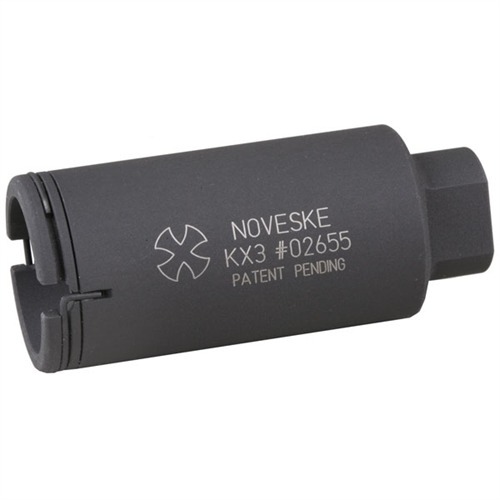 SPECS: Heat-treated steel, phosphate finish, matte black. 3 1/4" O.A.L. 1 3/8" diameter. 6.7 oz weught. 5.56 model fits rifles in 5.56mm/.223 with 1/2"-28 tpi muzzle threads.