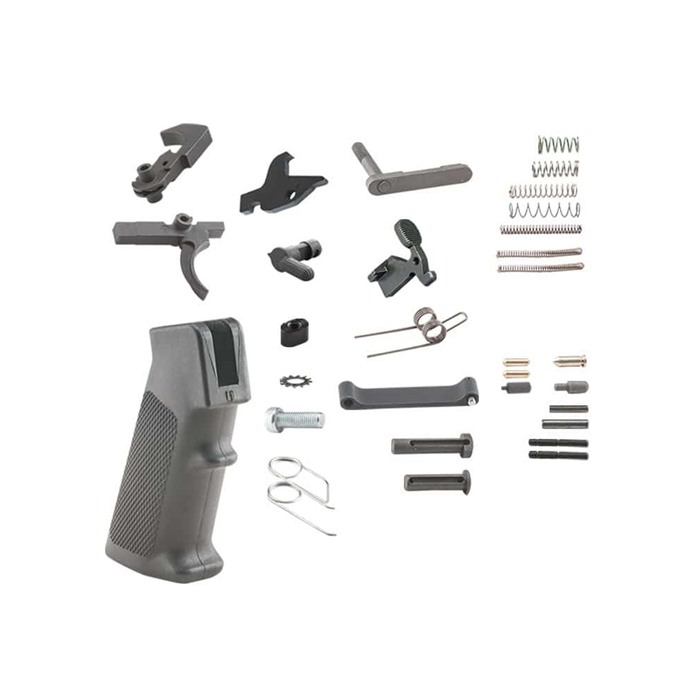 Zestaw części dolnej LLRPK-1 AR-15 od Luth-AR zawiera wszystkie elementy, aż po ostatnią sprężynę i pin, które przekształcą "stripped" dolną część w kompletny receiver gotowy do zamontowania tuby bufferowej, systemu buffer oraz kolby według Twojego wyboru.