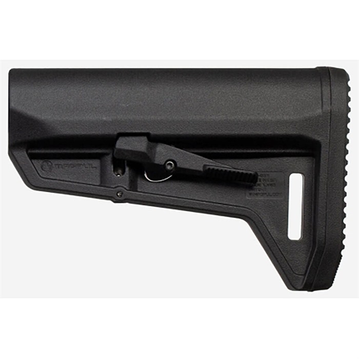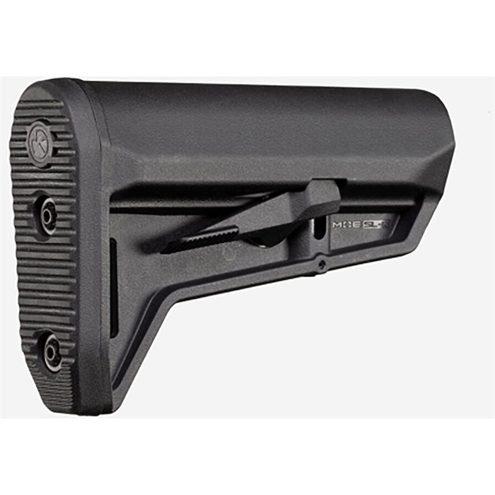 Further developing Magpul's original SL stock, the SL-K is designed for compact PDW-style weapons or users who simply desire a small, light, highly maneuverable stock. Drop-in replacement for M4-type adjustable stocks that fit mil-spec (1.14" O.D.) buffer tubes. It offers a short, slim profile, comfortably sloped cheekweld, a rubber recoil pad with a "rolled" toe for easy shouldering and better fit when wearing body armor. Built-in 1.25" sling loop, and also accepts Magpul ASAP® and M-LOK QD Sling Mount (available separately) for pushbutton QD sling swivels. Ambidextrous latch enables easy extension/retraction of stock, plus it minimizes rattle on the receiver extension without requiring additional locks, levers, or springs. Latch made of steel, too, so it won't fail under hard use.