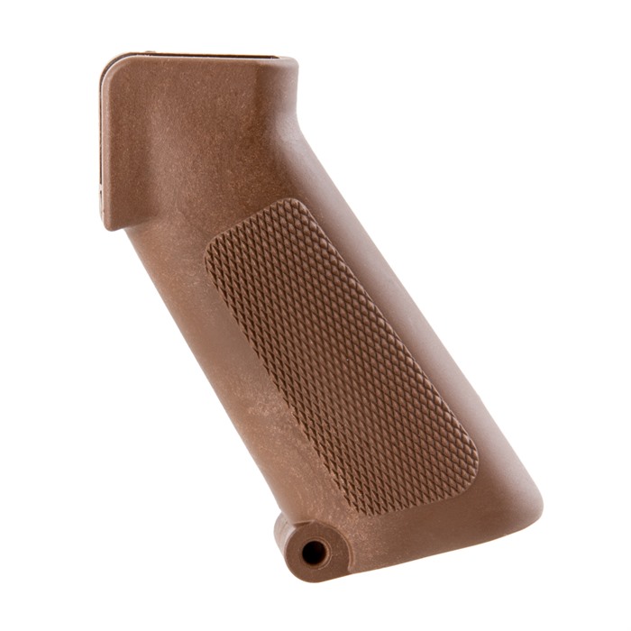 Recreate an American Classic with the Brownells M16A1 Pistol Grip, built to accurately replicate the original Grip issued to thousands of American servicemen & women. This Pistol Grip is modeled directly off of original grips, which are becoming increasingly difficult to find, or in decent condition. Combine the M16A1 Pistol Grip with the matching Handguard Set & Buttstock Assembly from Brownells, and you have a new condition furniture set for your AR-15, M16, M16A1 or other early model rifle. Pistol Grip includes incstruction, grip screw & washer. Available in several different colors including: Black - Proper for Model 602, XM16E1, M16A1 & later generation rifles introduced after 1963 Green - Proper for early Model 601 rifles, the first AR-15 adopted by the US Air Force in 1959 Brown - Similar to the earliest AR-15 Prototype rifle furniture used in the late 1950s Retro furniture from Brownells is not an exact copy of original components or their construction. Some areas have been changed due to manufacturing methods or to avoid counterfeit concerns.