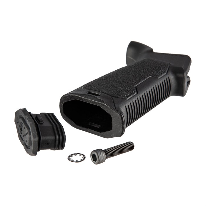 Uchwyt ma wystarczającą szerokość w strefie dłoni, aby maksymalizować komfort podczas długotrwałego użytkowania. Każdy uchwyt charakteryzuje się wygodnym ogonem bobra oraz bezpiecznym schowkiem pod spodem z dołączoną gumową końcówką. Zyskaj solidny i wygodny chwyt swojej broni dzięki uchwytowi Strike Industries AR Overmolded Enhanced Pistol Grip!