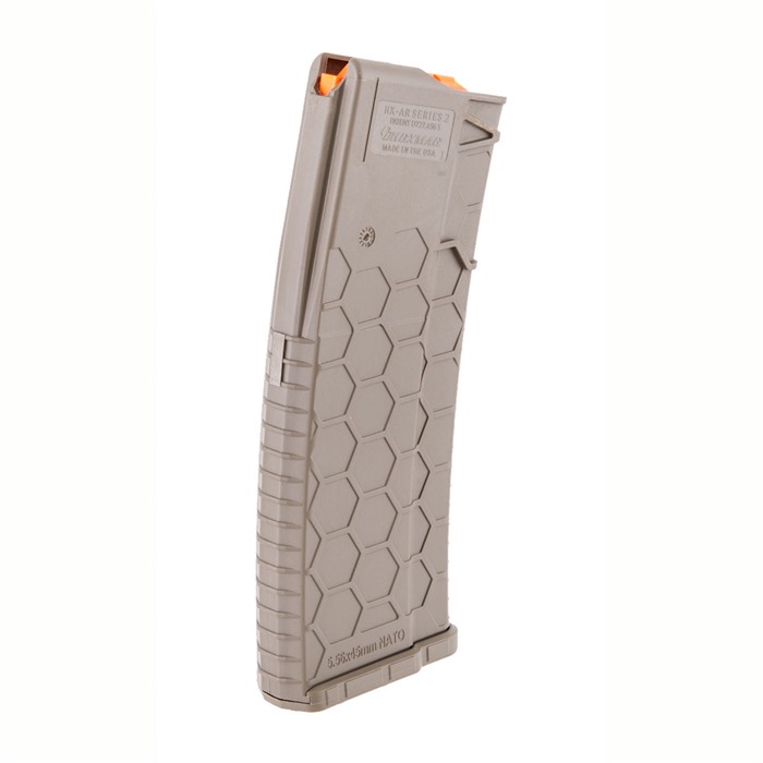 - Magazynki Hexmag charakteryzują się doskonałym uchwytem dzięki opatentowanemu podniesionemu heksagonalnemu wzorowi oraz odpornemu na uderzenia polimerowemu korpusowi.