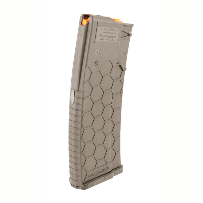 Magazynek jest dostarczany w pełni złożony z pomarańczowym wskaźnikiem Hexmag i płytką blokującą oraz jest kompatybilny z HexID. Magazynki Hexmag charakteryzują się doskonałym uchwytem dzięki opatentowanemu podniesionemu wzorowi heksagonalnemu oraz odpornej na uderzenia obudowie z polimeru. Oferują one jeden z nielicznych w branży prawdziwych projektów beznarzędziowych do demontażu magazynka w celu czyszczenia lub instalacji HexID.