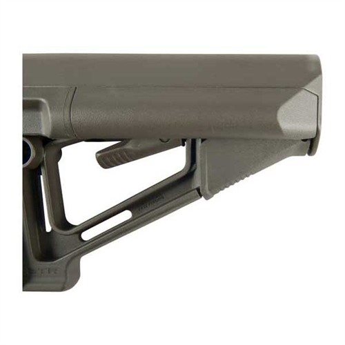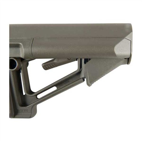 SPECS: Reinforced nylon polymer, Black, Dark Earth, or O.D. Green. 7¼" (18.4cm) OAL, 5¼" (13.3cm) high. LOP adjustment range: 3¼" (8.3cm). 12.5 oz (354g) wt. Mil-Spec – Fits mil-spec 1.14" O.D. carbine buffer tubes.