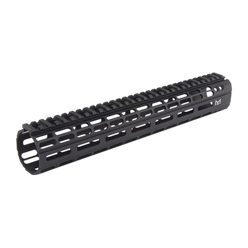 Aeros' Enhanced M-LOK (EM) Handguards provide a lightweight free float design for your custom AR15 build. The M-LOK system allows advanced modularity past the current 1913 picatinny rail system. Machined to mil-spec dimensions and engineered to perfection, this handguard eliminates bulk while retaining strength and stability. FEATURES: 1pc free float design Built in anti-rotation tabs Scalloped rails Continuous top rail 1.78" inside diameter fits most muzzle devices and 1.5" suppressors Compatible with low profile gas blocks GEN-2 FEATURES Quick disconnect sling socket at the 3, 6 and 9 o'clock positions Additional milling along flats to aid with gripping and add visual appeal New profile for the continuous picatinny top rail PLEASE NOTE: This handguard is specific to the AR15/M4E1 platform. It is not compatible with the M5 .308/M5E1 platform.
