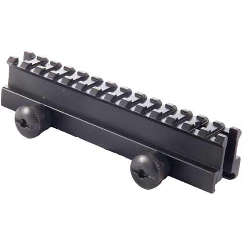 Picatinny rail designs increase your scope and accessory mounting options without gunsmithing or permanent alterations. Single Rail (SR) keeps weight to a minimum. Made from tough, extruded aluminum; attaches securely with easy-to-turn, steel thumbscrews with threaded steel studs. Accepts both Picatinny or Weaver-style accessories and rings and includes mounting recesses and screws for STANAG rings. Sight tunnel in carry handle version allows unobstructed use of the adjustable A2 factory sights. Flat top version raises line of sight by .870" for improved eye relief and more comfortable cheek weld with conventional or electronic optics. Available for A2 carry handle or A4 flattop receivers. Both models attach quickly with either single or dual thumbscrews.