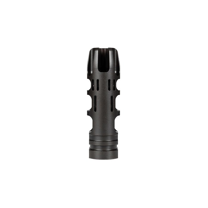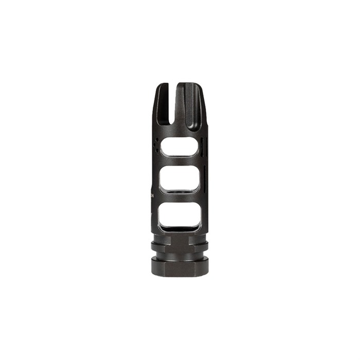 The VG6 Epsilon 762 is a muzzle brake / compensator / flash suppressor hybrid, so it helps you keep the muzzle down and stay on target during rapid fire, while is reduces the battering some 7.62 / .308 rifles give your shoulder. Unique internal chamber geometry redirects combustion gases to significantly quell felt recoil and minimize muzzle movement, so you can concentrate on saturating the target with hits, no matter how fast you shoot. Three prongs on the VG6 Epsilon 762 substantially reduce flash signature - so there’s your flash suppressor. With no ports at the 12 o’clock position, there is no distracting flash to get between your optic and the target. Dual chambers inside redirect gas to reduce recoil; six valve holes on the underside release the fastest-moving gases from the chamber closest to the muzzle, further decreasing felt recoil. Specifically configured for rifles chambered in .308 Winchester / 7.62x51mm NATO Machined 17-4 PH stainless steel heat-hardened to Rc 68 (Rockwell C) Fits muzzles with 5/8"-24 tpi threads Crush washer included Comes with a pre-drilled hole for pinning to a 14.5" barrel to produce an NFA-exempt 16.1" barrel OAL