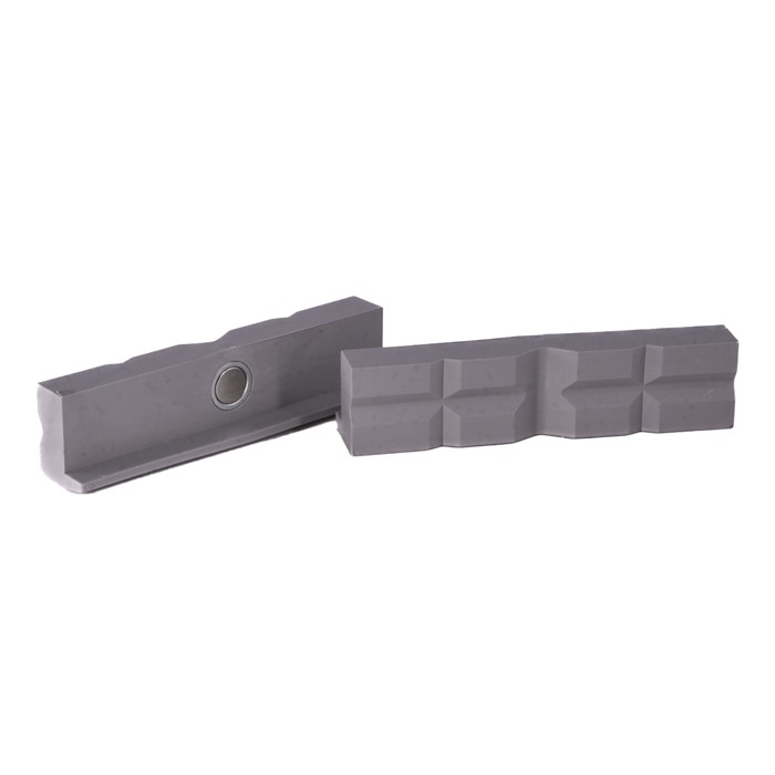 Te wkładki szczęk z poliuretanu mają unikalny wzór "karbowania" na powierzchniach chwytających, co pozwala na trzymanie delikatnych małych części bez ich uszkodzenia. Miękka powierzchnia poliuretanu jest bardzo elastyczna i odporna na odkształcenia.