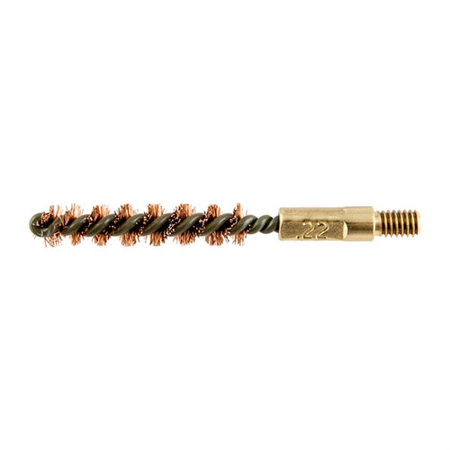 Trzon szczotki jest zimno spawany do rdzenia z mosiądzu, co pozwala wytrzymać do 200 lbs siły ciągu bez rozdzielania. Wszystkie modele są gwintowane, aby pasowały do standardowych prętów 8-32 i precyzyjnie wykonane, aby zapewnić czysty gwint startowy, dzięki czemu szczotka łatwo wkręca się w pręt. Kaliber jest oznaczony na trzonie, co daje pewność, że zawsze masz odpowiednią szczotkę do swojego karabinu.