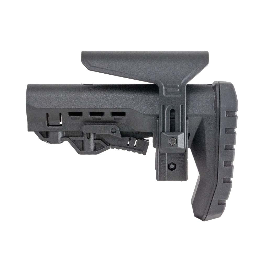 addition to its ergonomic and adjustable design, this stock boasts a low weight and slim form factor. Its lightweight construction ensures that your rifle remains agile and maneuverable, while the slim profile reduces unnecessary bulk.