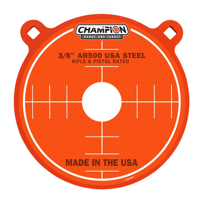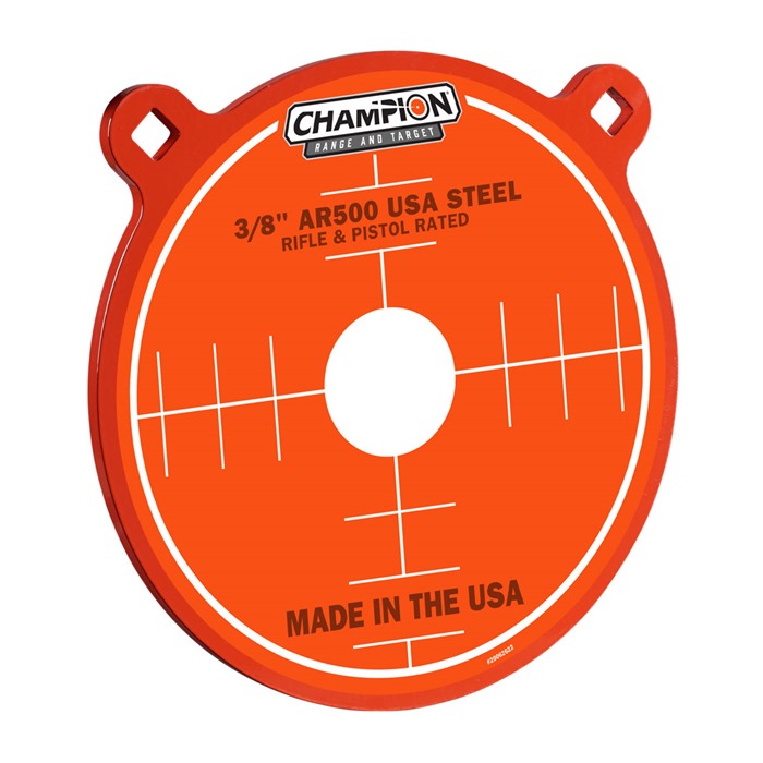 Cele stalowe Champion Center Mass są wykonane z premium stali AR500, która jest oceniana na wytrzymywanie wielu uderzeń pocisków z większości powszechnych karabinów centralnego zapłonu.