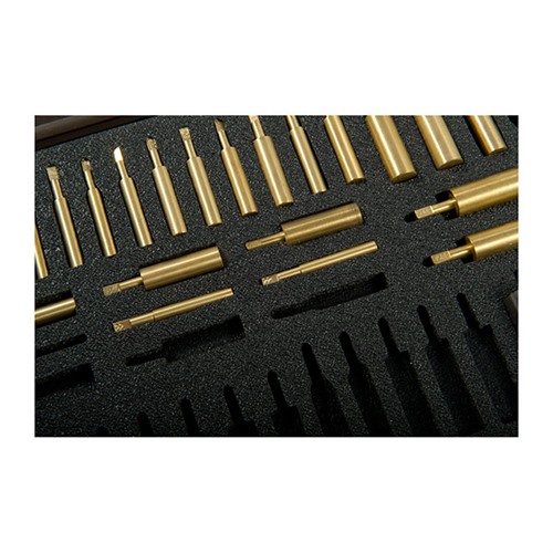 The Brownells Chamfering and Facing Combo Set is an essential tool kit for shooters and gunsmiths looking to enhance the functionality and aesthetics of firearm barrels. This combo set provides everything you need to create clean and precise chamfers and facings on the muzzle and chamber of your firearm barrels. KEY FEATURES Precision Tools: This set includes high-quality tools designed to provide precise and consistent results. You can achieve professional-grade chamfers and facings with ease. Versatility: The combo set is suitable for a wide range of firearms, making it a valuable addition to any gunsmith's toolkit. It is compatible with various barrel sizes and types. Improved Accuracy: By using the chamfering and facing tools, you can enhance the accuracy of your firearm by ensuring a uniform and square muzzle and chamber. Professional Finish: The tools in this set are designed to create clean and polished chamfers and facings, improving the overall look and functionality of your firearm. Durability: Brownells is known for producing high-quality gunsmithing tools, and this combo set is no exception. The tools are built to last and withstand heavy use. Whether you're a seasoned gunsmith or a firearm enthusiast looking to perform your own barrel work, the Brownells Chamfering and Facing Combo Set is a valuable investment. It allows you to achieve precise results, improve the accuracy of your firearm, and give it a professional finish. Please note that specific product details and features may vary, so it's a good idea to check Brownells' official website or contact their customer support for the most up-to-date and detailed information about this product. COMPONENTS 45/90 RIFLE MUZZLE REPLACEMENT HANDLE FLAT STORAGE BOX ¾ X ¾ VAPOR TABS & RUST BLOX .20 CALIBER MUZZLE CHAMFER TOOL, BRASS .416 CALIBER SLIP IN STYLE PILOT, BRASS .45 CALIBER SLIP IN STYLE PILOT, BRASS .50 BMG SLIP IN STYLE PILOT, BRASS 7MM RIFLE MUZZLE PILOT, BRASS .22 RF RIFLE / REVOLVER MUZZLE PILOT, BRASS .22 CF RIFLE MUZZLE PILOT, BRASS 22 RF .211” DIAMETER RIFLE /REVOLVER MUZZLE PILOT, BRASS 22 RF .213” DIAMETER RIFLE /REVOLVER MUZZPLE PILOT, BRASS 6MM /.243 CALIBER RIFLE MUZZLE PILOT, BRASS .257 CALIBER RIFLE MUZZLE PILOT, BRASS 6.5MM /.264 CALIBER RIFLE MUZZLE PILOT, BRASS .270 CALIBER RIFLE MUZZLE PILOT, BRASS .30 CALIBER RIFLE MUZZLE PILOT, BRASS .303 BRITISH RIFLE MUZZLE PILOT, BRASS .32-20 RIFLE /REVOLVER MUZZLE PILOT, BRASS 8MM RIFLE MUZZLE PILOT, BRASS .338 CALIBER RIFLE MUZZLE PILOT, BRASS .35 CALIBER RIFLE MUZZLE PILOT, BRASS .375 CALIBER RIFLE MUZZLE PILOT, BRASS .38-40 CALIBER RIFLE /REVOLVER MUZZLE PILOT, BRASS .458 /.45-70 CALIBER RIFLE MUZZLE PILOT, BRASS .38/.357 CALIBER REVOLVER BARREL MUZZLE PILOT, BRASS .44 CALIBER REVOLVER BARREL MUZZLE PILOT, BRASS .45 CALIBER REVOLVER BARREL MUZZLE PILOT, BRASS 11 DEGREE X ¾ RIFLE CUTTER 90 DEGREE FACING CUTTER 1/2X45 DEGREE MUZZLE /CYLINDER CUTTER