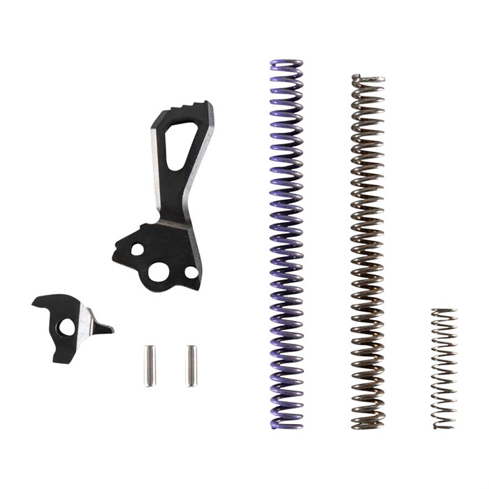 Każdy Zestaw Ulepszeń Akcji Apex Tactical zawiera części zamienne do fabrycznego kurka i spustu. Te precyzyjnie obrabiane komponenty zostały zaprojektowane, aby zapewnić czyste przełamanie spustu w trybie single-action, połączone z płynnie działającym pociągnięciem double-action, które jest spójne przez cały proces strzelania.