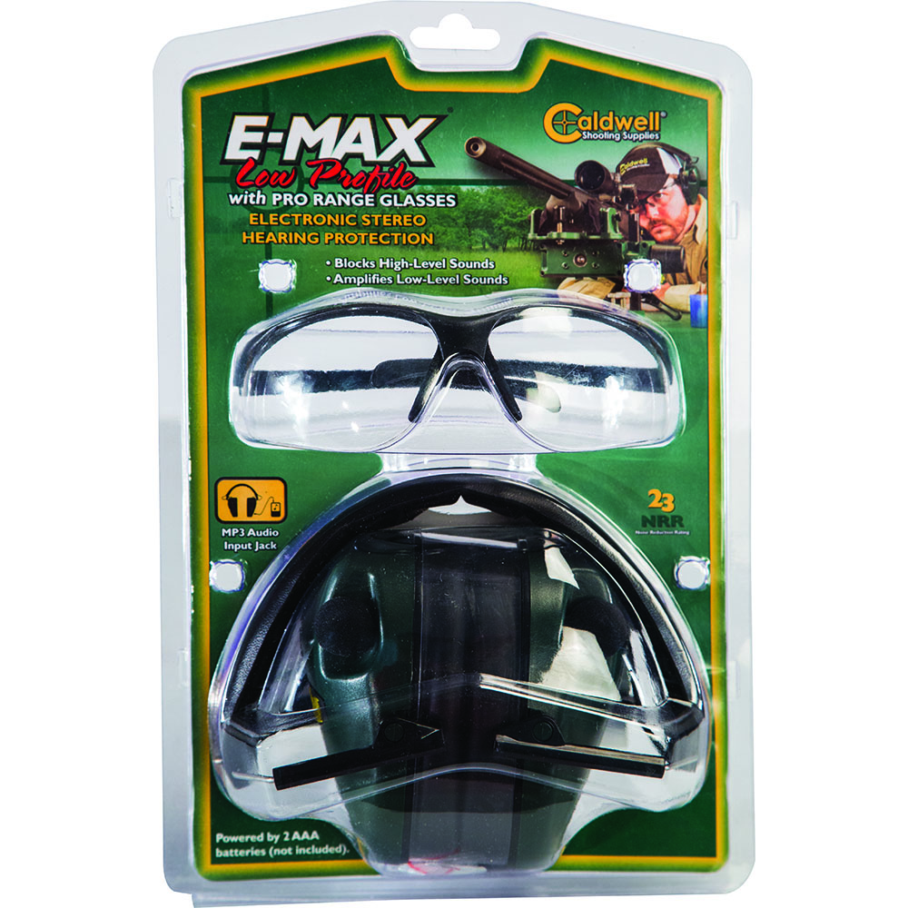 Nauszniki Caldwell E-Max Low Profile posiadają dwa mikrofony, które wzmacniają dźwięki poniżej 85 decybeli, co umożliwia normalną komunikację, słuchanie komend na strzelnicy oraz dźwięków otoczenia. Gdy poziom hałasu przekracza 85 decybeli, mikrofony automatycznie się wyłączają, aby chronić słuch strzelca.