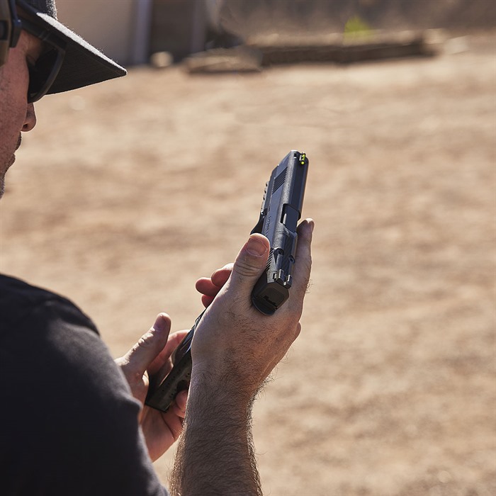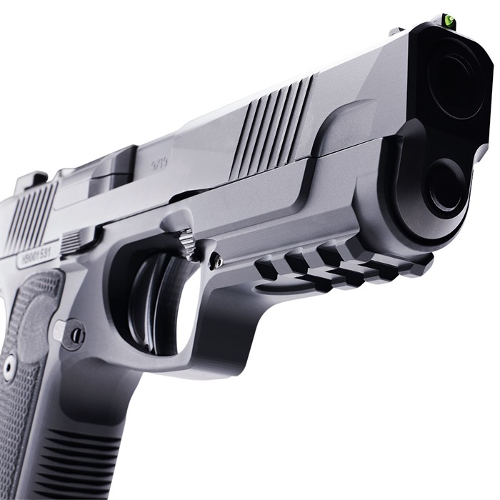- Ergonomia: Ambidextrous controls, accessory rail oraz gotowość do montażu optyki.