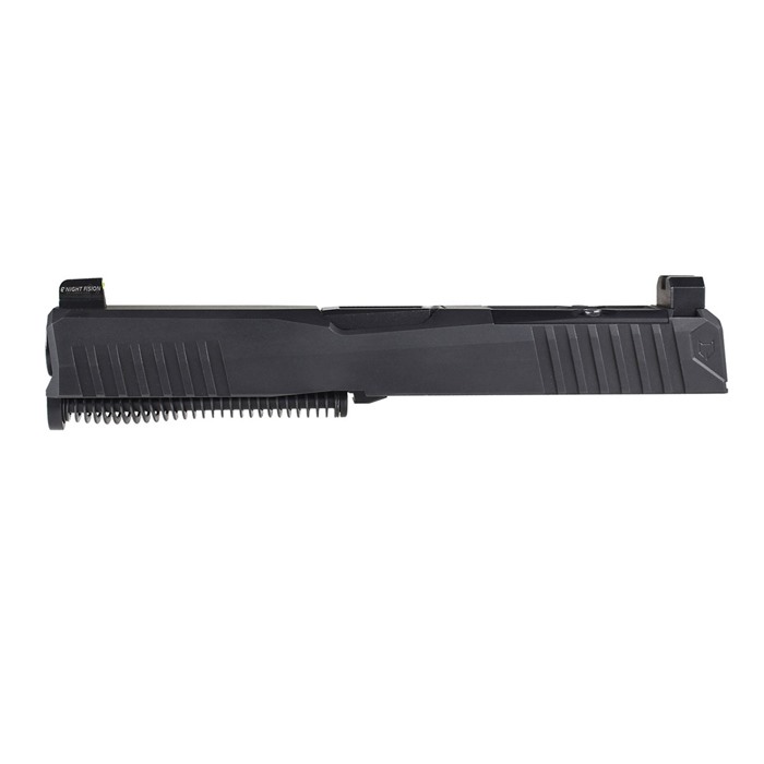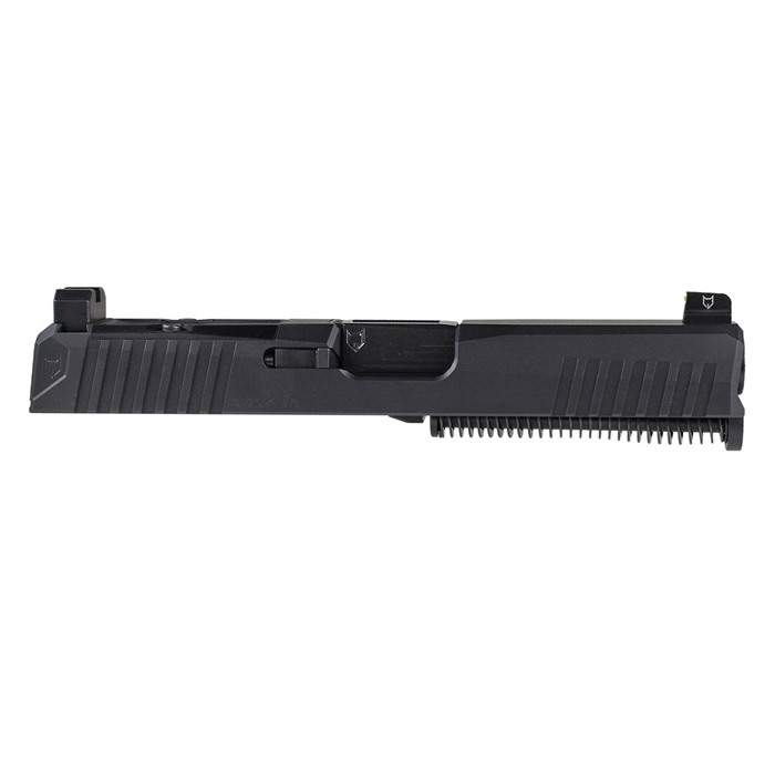 Przednie i tylne żłobienia na zamku ułatwiają ładowanie i sprawdzanie komory. Zamek jest gotowy do montażu celownika refleksyjnego, a w zestawie znajduje się pokrywa optyki DUSK19, kompatybilna z Trijicon RMR/SRO oraz Holosun 407/507/508 (modele Non-K). Dodatkowo, zamek zawiera ? co-witness lub wysokość tłumika Night Fision Stealth Series z wkładką Tritium, zapewniającą wyraźny widok od zmierzchu do świtu.