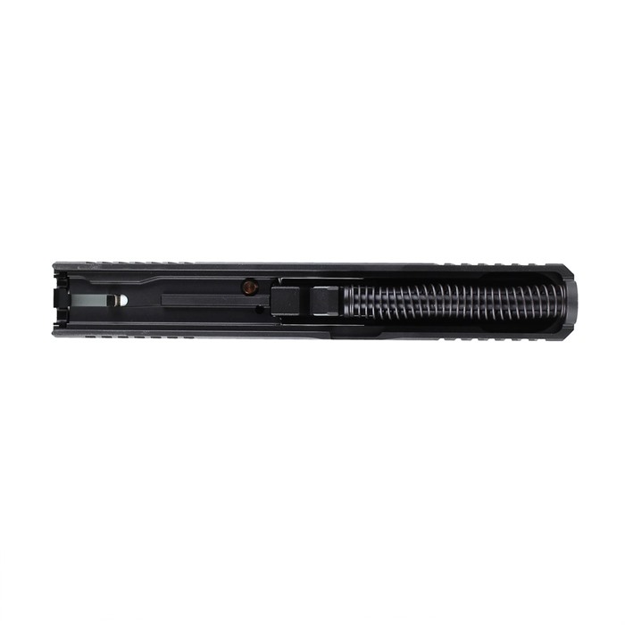 Górna część zawiera również lufę ze stali nierdzewnej 416 pokrytą PVD z nowym profilem DUSK 19, dostępną w wersji gwintowanej lub niegwintowanej. Kieszeń na osłonę i boczne żebra redukują powierzchnię stykową, co przyspiesza cykl i zwiększa odporność na zużycie powłoki.