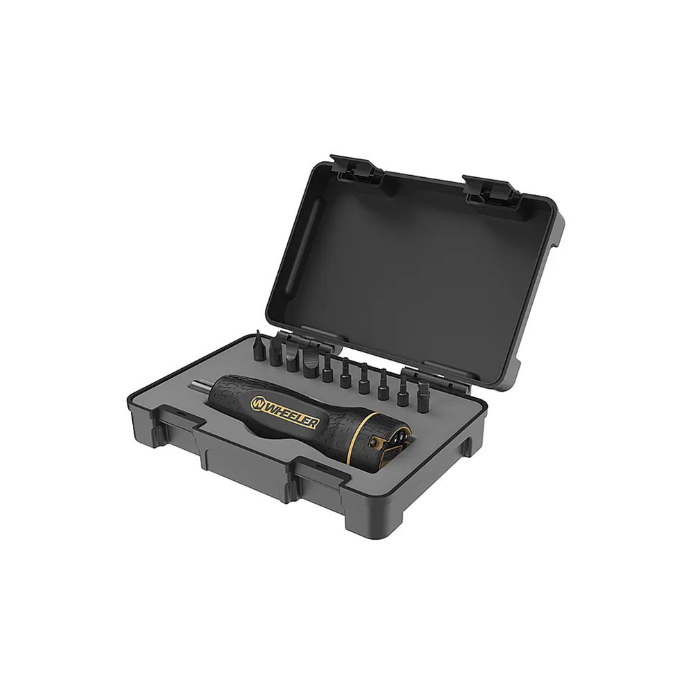 661120746997 Klucz dynamometryczny Wheeler Digital F.A.T. oferuje jeszcze dokładniejsze ustawienie momentu obrotowego. Ten niesamowity cyfrowy klucz dynamometryczny pozwala na precyzyjne ustawienie powtarzalnych wartości momentu obrotowego. Klucz Digital F.A.T. ma szeroki zakres regulacji siły dokręcania od 5 do 100 funtów na cal (0,56 - 11,3 niutona metry) i może obsługiwać różnorodne typowe zadania związane z karabinami, takie jak montaż celowników typu red dot, mocowanie pierścieni i podstaw do lunet oraz innych elementów mocujących zgodnie z Twoimi specyfikacjami siły dokręcania. Podwójne wskaźniki dźwiękowe i wizualne pokazują dokładnie, kiedy osiągnięto pożądany moment obrotowy, zapobiegając nadmiernemu dokręcaniu lub uszkodzeniu elementów mocujących. Wkrętak wyposażony jest w magnetyczny koniec, który zapobiega wypadaniu bitów oraz teksturowaną gumową powierzchnię uchwytu, co poprawia ergonomię i chwyt, a także zmniejsza zmęczenie dłoni. Końcówka wkrętu oraz wszystkie bity są pokryte czarnym fosforanem, co zapobiega korozji i wydłuża żywotność narzędzia. Wszystkie narzędzia są starannie zorganizowane i zabezpieczone w solidnej plastikowej obudowie z zatrzaskiem.Czas dostawy ok. 3-6 dni.