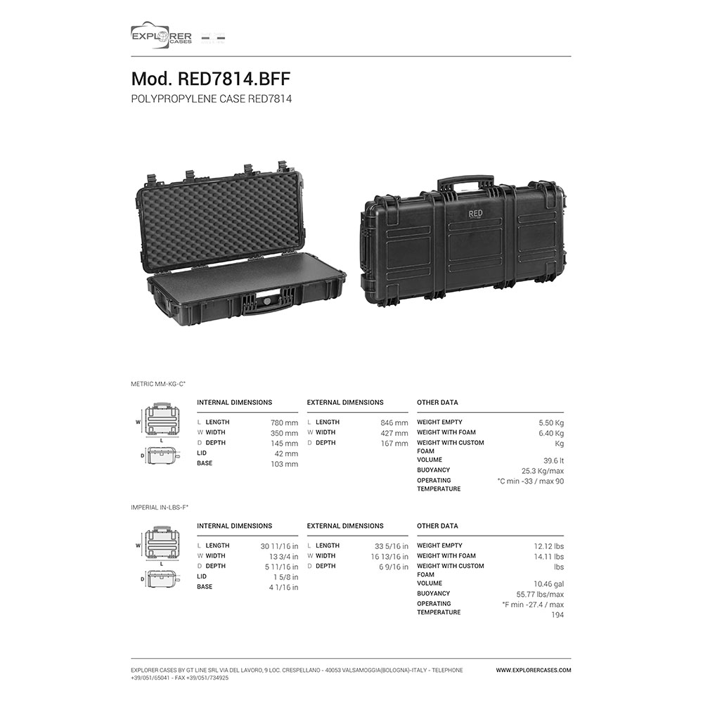 8024482184647 Najlepsza ochrona dla Twojego najcenniejszego skarbu - Ostateczna torba na broń z różnorodnymi funkcjami w najwyższej jakości, wyprodukowana przez Explorer Cases we Włoszech. Specyfikacje: Długość: 864mm (780mm wewnątrz) Szerokość: 427mm (350mm wewnątrz) Głębokość: 167mm (145mm wewnątrz) Waga: 6,40kg (5,50kg bez wkładu) Kolor: Czarny Wkład: Density Full Foam Dosłownie niezniszczalny Torby na broń od Explorer Cases mają odporne na korozję metalowe zawiasy z funkcją zatrzymywania pokrywy, które stabilizują pokrywę i utrzymują ją w miejscu po otwarciu. Możesz być pewny, że Twoje torby na broń będą Ci służyć przez długi, długi czas. Dzięki zamkom zabezpieczającym torby na broń są zawsze wysoko zabezpieczone. Uszczelka O-ring sprawia, że są one w dużym stopniu wodoodporne. Każda torba na broń jest wyposażona w ręczny zawór do uwalniania ciśnienia powietrza. Dlatego możesz być spokojny i nie będziesz miał problemów z obsługą i zamykaniem torby. Seria 3005 jest zoptymalizowana do transportu samolotem. Dokładnie tak, jak chcesz Torby są wyposażone w wewnętrzne wycięcia do opcjonalnych uchwytów wewnętrznych lub pierścieni montażowych, dzięki czemu możesz przechowywać wszystko dokładnie tak, jak najbardziej odpowiada Twoim wymaganiom. Każda torba ma wodoodporną, wyjmowaną etykietę, dzięki której możesz oznaczyć swój sprzęt lub przechować swoje dane. Torba może być transportowana tradycyjnie za pomocą dużego uchwytu z przodu lub za pomocą opcjonalnych pasków na ramię, które można łatwo przymocować do dowolnego modelu.Czas dostawy ok. 3-6 dni.