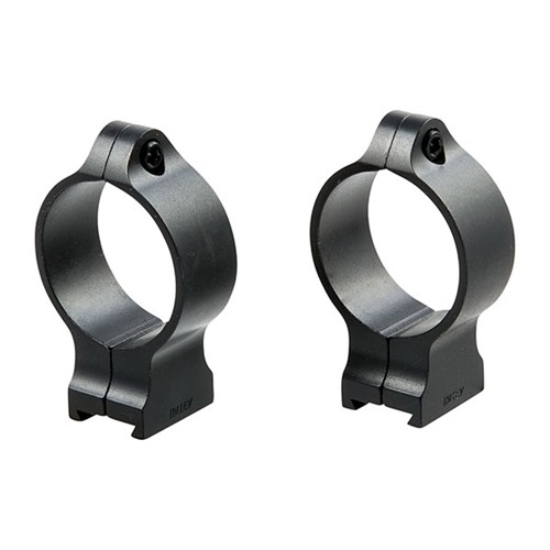 SPECS: Steel, blue, satin finish or stainless steel (SS), natural finish. Models available for 1 or 30mm diameter scope tubes. Ring heights measured from top of base to bottom of ring. Low - .300 (7.62mm). Medium - .400 (10.16mm). High - .500 (12.7mm). X High - .600 (15.2mm). Fit Talley bases only. Available in pairs.