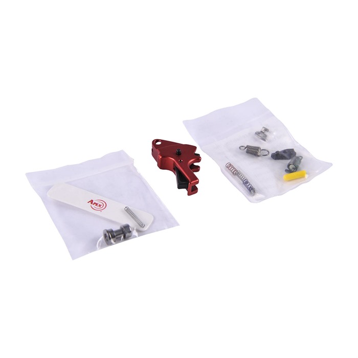 Products Included: (1 each - 13 total pieces in the package) A) Aluminum Flat-Faced Forward Set Trigger Metal Frame Specific Safety included B) Apex Forward Set Sear Actuator C) Apex Fully Machined 2-Dot Sear D) Ultimate Striker Block Kit (Striker Block, Spring and Apex Rear Sight Tool) E) Forward Set Spring Kit for M2.0 (Heavy Sear Spring, Duty/Carry Sear Spring, Heavy Trigger Return Spring, Duty/Carry Trigger Return Spring, Polymer Slave Pin, and Sear Plunger*) *You must install the Apex provided Sear Plunger with the trigger kit. We include a Sear Plunger with this kit, though the factory configuration does not utilize a Sear Plunger. The Orange Spring paired with our plunger matches the force of the factory Green Sear Spring without a plunger. What It Does: Nothing compares to the performance that comes from the patented Apex Forward Set Trigger Kit. This kit is engineered to provide the M&P M2.0 pistol owner with a smooth, consistent trigger pull with the advantages of shorter over-travel and shortened trigger reset. Using a combination of the Apex springs and factory sear and trigger return springs allows the user to set the trigger pull weight within a range suitable for duty/carry down to a weight desired for competition. Together, this drop-in trigger kit will: Expected Results: Trigger Pull Weight adjustable to approx. 3.3 and 5.5 lbs depending on the springs installed. Reduce overall trigger travel by approximately 40% Reduce trigger pre-travel, over-travel and reset distance Smooth uptake and reset Crisp trigger break Center mounted pivoting safety maintains factory safety values Direct drop-in replacement parts, no fitting required Tested and Passed Apex’s Extensive Drop Testing parameters. Applicable to What Guns: For use in the Smith & Wesson M&P M2.0 Metal Frame pistols including the “Competitor” and “Metal” (Not for use in the original M&P, of in any M&P Shield models)
