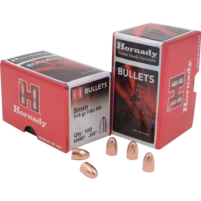 Wybierz pociski Hornady® FMJ 9MM (0.355") 115GR ROUND NOSE, aby doświadczyć niezrównanej jakości i precyzji podczas strzelania!